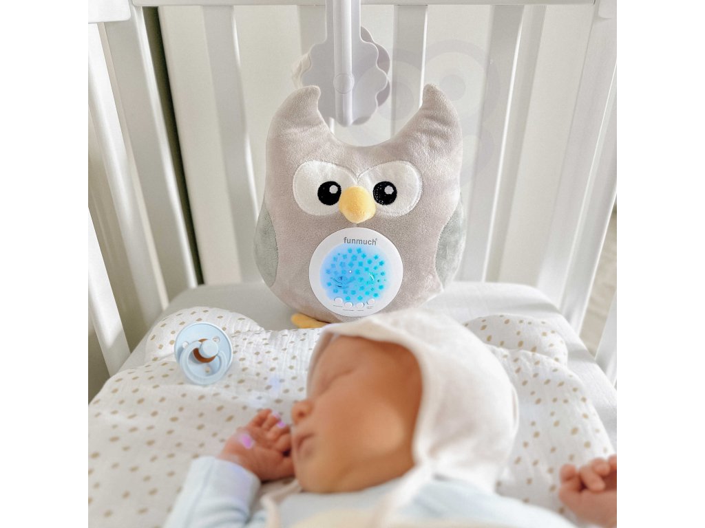 Plyšová spiaca sova od značky Woopiebude spoločníkom na spanie vaše dieťa. Maskot je dokonalýpre dojčatá iseniori detiktorí neradi zaspávajú sami. Sova bude dokonalým priateľom pre dobré sny a záchrancom pred príšerami v skrini.Objatiemá4 funkcie. Keď ho zapnete, budete počuť príjemné melódie a bruško začne žiariť rôznymi farbami. Keď stlačíte tlačidlo "Biely nos", budete počuť rôznehluk alebotlkot srdca. Hračka má tiež až10 rôznych uspávaniek a možnosť nastavenia3 úrovne hlasitostiaby ste mohli nastaviť zvuk podľa želania vášho dieťatka a mali istotu, že sa počas spánku nezobudí.Hračka je vhodná pre dojčatá, a preto jenaplnené mäkkou vatou.Okrem toho je možné plyš bezpečne aľahko čisté, vyňatím mechanizmus a jeho následnú jednoduchú montáž. To umožní staršiemu dieťaťu používať hračku ako maskota bez mechanizmu. Každé dieťa si túto hračku zamilujesova!