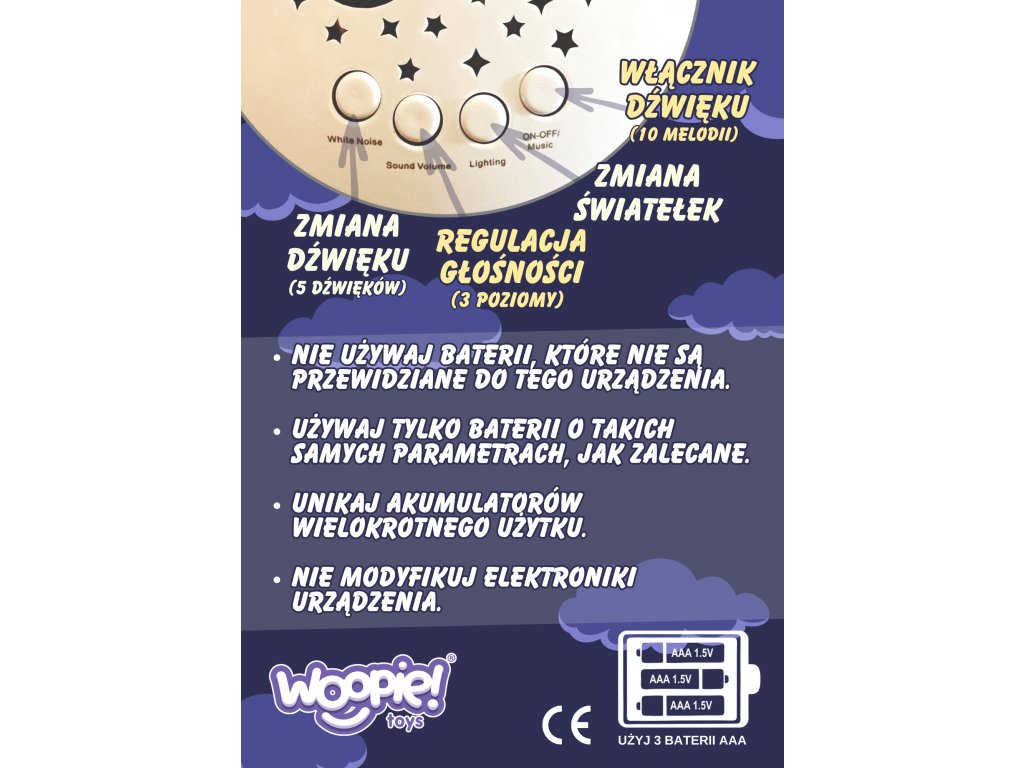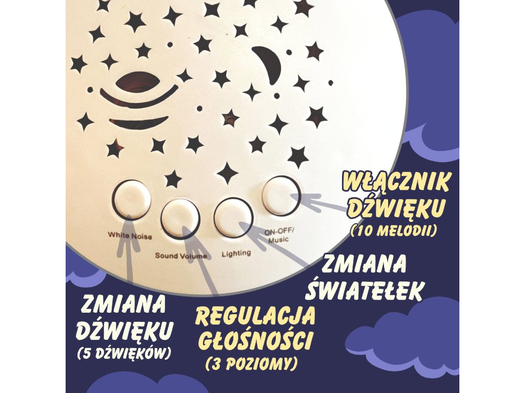 - - účinkyluminous izvuk- melódie a uspávanky, ktoré vám pomôžu zaspať + projektor meniaci farby,