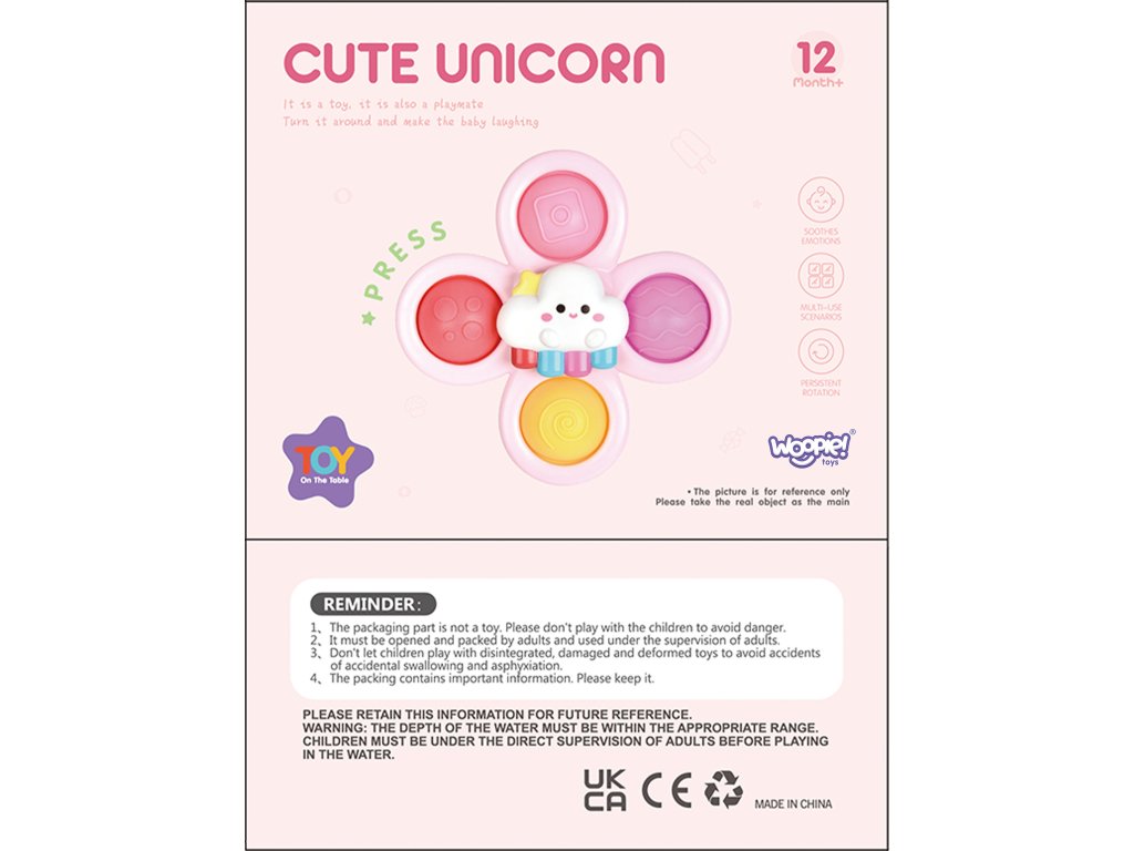 Sada roztomilých spinnerov od značkyWOOPIEurobí na vaše dieťa veľký dojem. Súprava obsahuje3 ks. spinnery: Unicorn Star Cloud. Vďaka gumičke môže dieťa spinnery vziať a pripevniť kdekoľvekprísavky. Spinner môžete pripojiť k obomzasklievanie počas cesty a nakúpele počaskúpele (hračka môže byť namočená). Ložiská spinnera zaručujúdlhodobé obrat. Odnímateľné prvky sa dajú ľubovoľne kombinovať. Hračky majú gumové prvky s rôznymi povrchmi, ktorérozvíja zmysly a pôsobí ako prostriedok na uvoľnenie stresu. Hravé cvičeniaobratnosť rúk a zlepšujekoordinácia rúk a očí. Tieto hračky môžu pôsobiť ako nástroj na relaxáciu a zníženie stresupomáhať pri dosahovaní stav pokoja a mieru.
