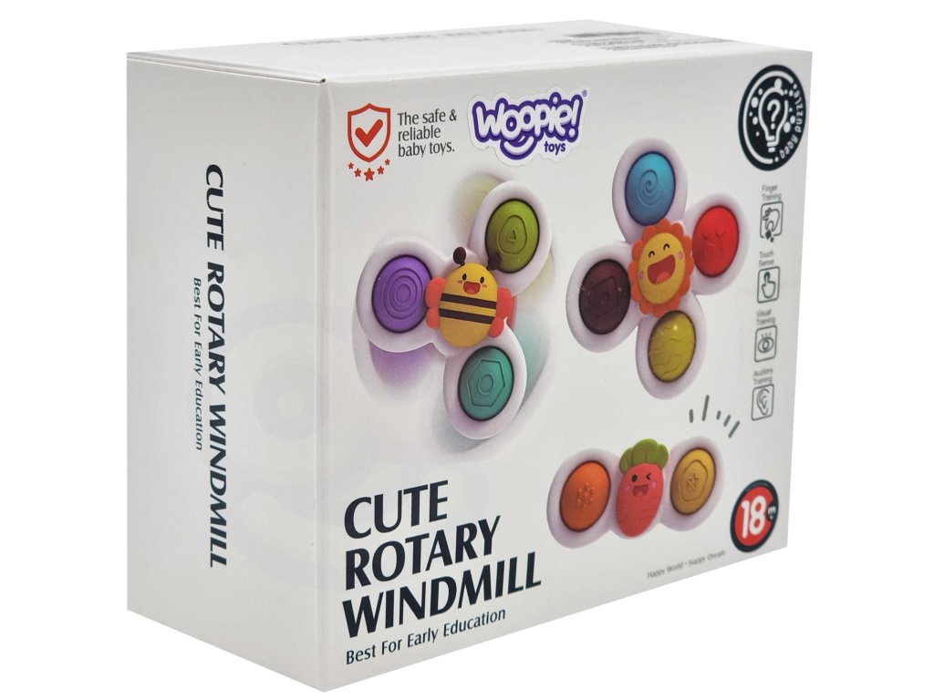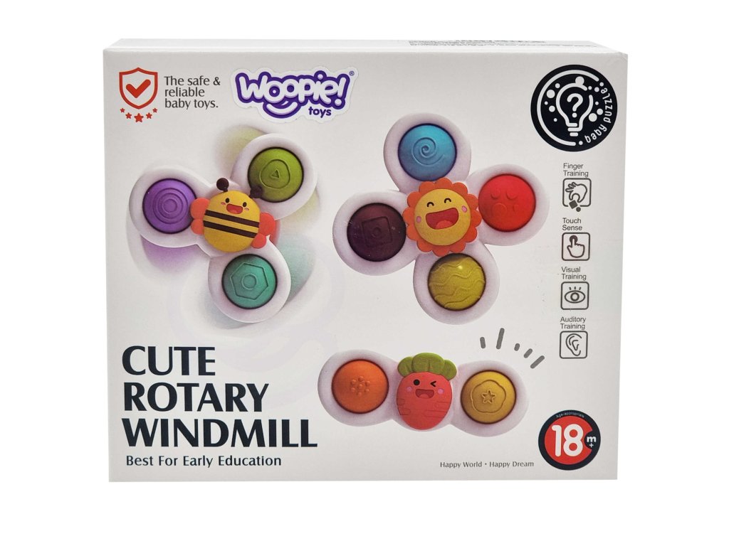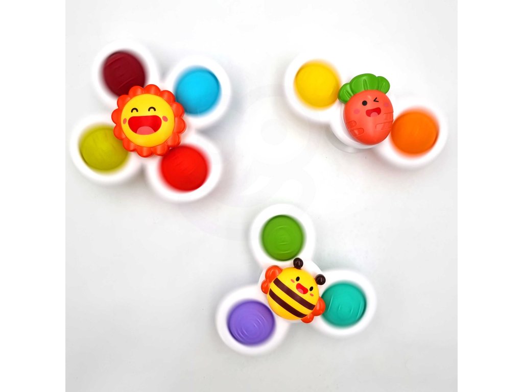 Súprava spinnerov od značkyWOOPIEurobí na vaše dieťa veľký dojem. Súprava obsahuje3 kusy priadky: mrkva, včela a slnečnica. Spinnery sa dajú vziať kamkoľvek a pripevniť kdekoľvek vďaka gumičkeprísavky. Spinner môžete pripojiť k obomzasklievanie počas cesty a nakúpele v časekúpele (hračka sa môže namočiť). Záruka na ložiská spinnerovdlhodobé obrat. Hračky majú gumové časti na stlačenie, ktorérozvíja zmysly dieťaťa a konaťzmiernenie stresu. Hra cvičíagility za rok u dieťaťa a zlepšujekoordinácia rúk a očí.