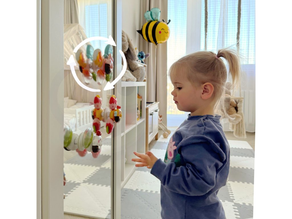 Sada spinnerov od značkyWOOPIEurobí na vaše dieťa veľký dojem. Súprava obsahuje3 ks. točí: včielka, kuriatko a zajac. Spinnery sa dajú vziať kamkoľvek a pripevniť kdekoľvek pomocou gumyprísavky. Spinner môžete pripojiť k obomzasklievanie počas jazdy, ako aj na iné rovné povrchy. Ložiská spinnera zaručujúdlhodobé obrat. Odnímateľné prvky umožňujú ľubovoľné kombinovanie a je možné ich aj spájať a vytvárať tak zábavné omáčky. Hračky majú gumové a hrkajúce prvky, ktoré umožňujúrozvíja zmysly a pôsobí ako prostriedok na uvoľnenie stresu. Hravé cvičeniaobratnosť rúk u dieťaťa a zlepšujekoordinácia rúk a očí.