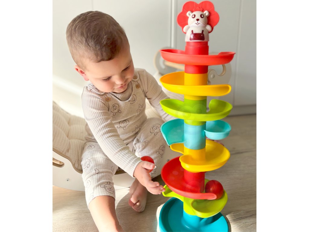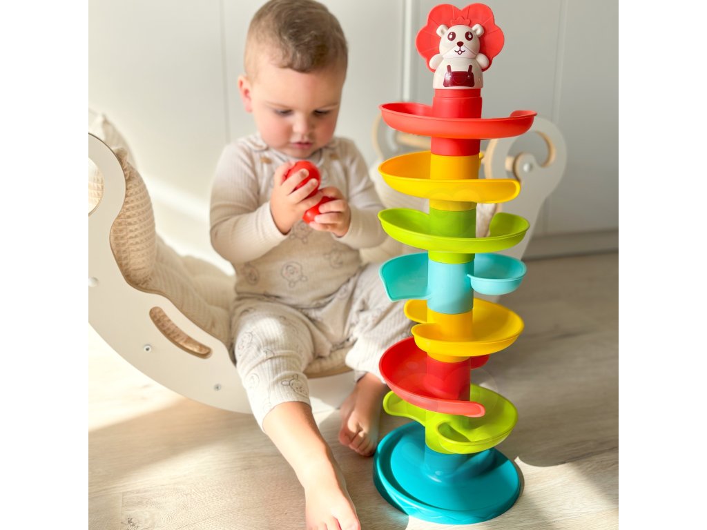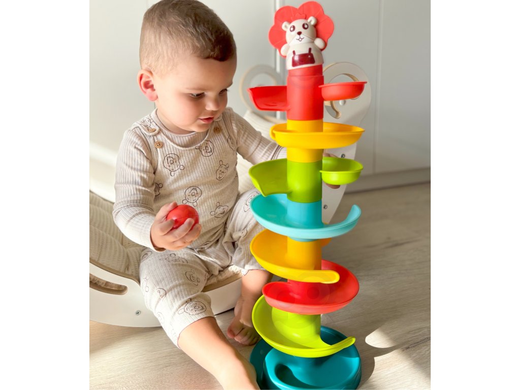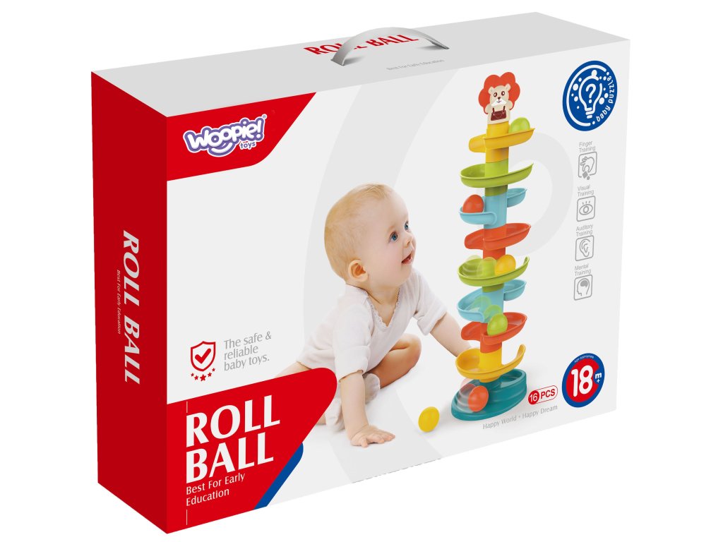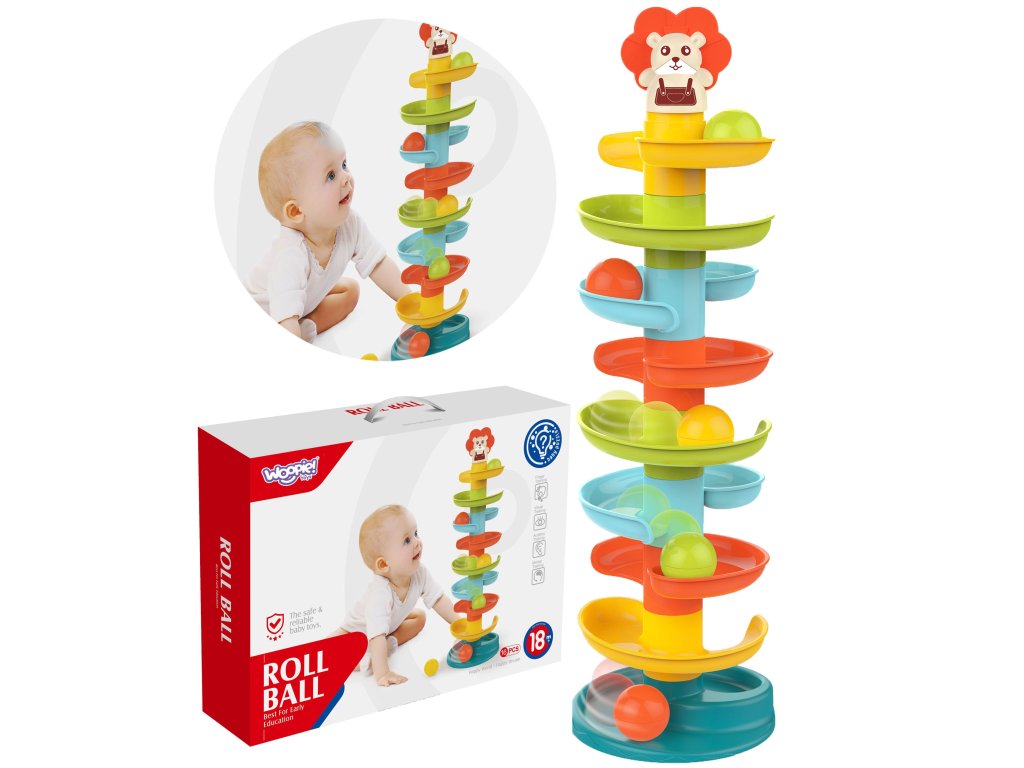 Kulodrome odWOOPIE tošpirálová veža poskytuje nekonečnú zábavu. Táto farebná súprava obsahuje10 farebných dielov ktorébatoľa môže ľahko usporiadať jednu na druhú. Guľôčky vypúšťajte jednu po druhej z hornej úrovne a sledujte, ako sa jedna po druhej kotúľajú a hojdajú. Loptičkový park je vybavený 6 ľahké a jednoduché na uchopenie loptičiek rôznych farieb, ktoré pri pohybe vydávajú zvuk. Veľkosť je vhodná pre malé ruky apomáha rozvíjať koordináciu oko-ruka.