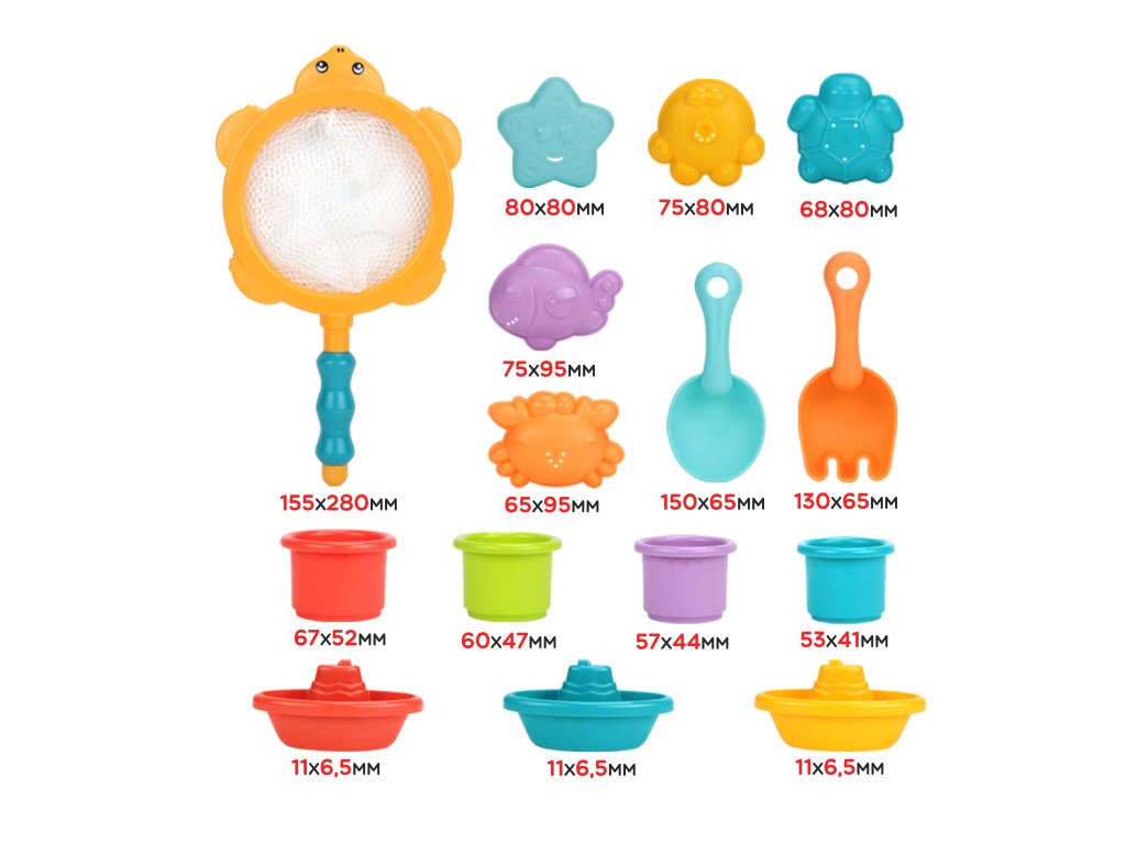 Súprava hračiek do vodyod značkyWOOPIEbude skvelým doplnkom do kúpeľa vášho dieťaťa. Súprava sa dá použiť ajpri kúpaní ahrať sa v piesku. Súprava obsahuje:sieťovina na rybolov;3 lode;4 šálkyktoré je možné zostaviť;5 formičiek/tumblérov v závislosti od toho, či sa hrá vo vode alebo v piesku, a2 čepele. Dieťa počas kúpaniamôžete vykonávať celý rad rôznych experimentov!Súprava vám nielen spríjemní kúpanie alebo hru na pieskovisku, ale ajrozvíja manuálne zručnosti u dieťaťa a bude sa rozvíjaťvnímanie okolitého svetaa predovšetkým umožní dieťaťu, aby sa počas umývania sústredilo a niečím sa zaoberalo.