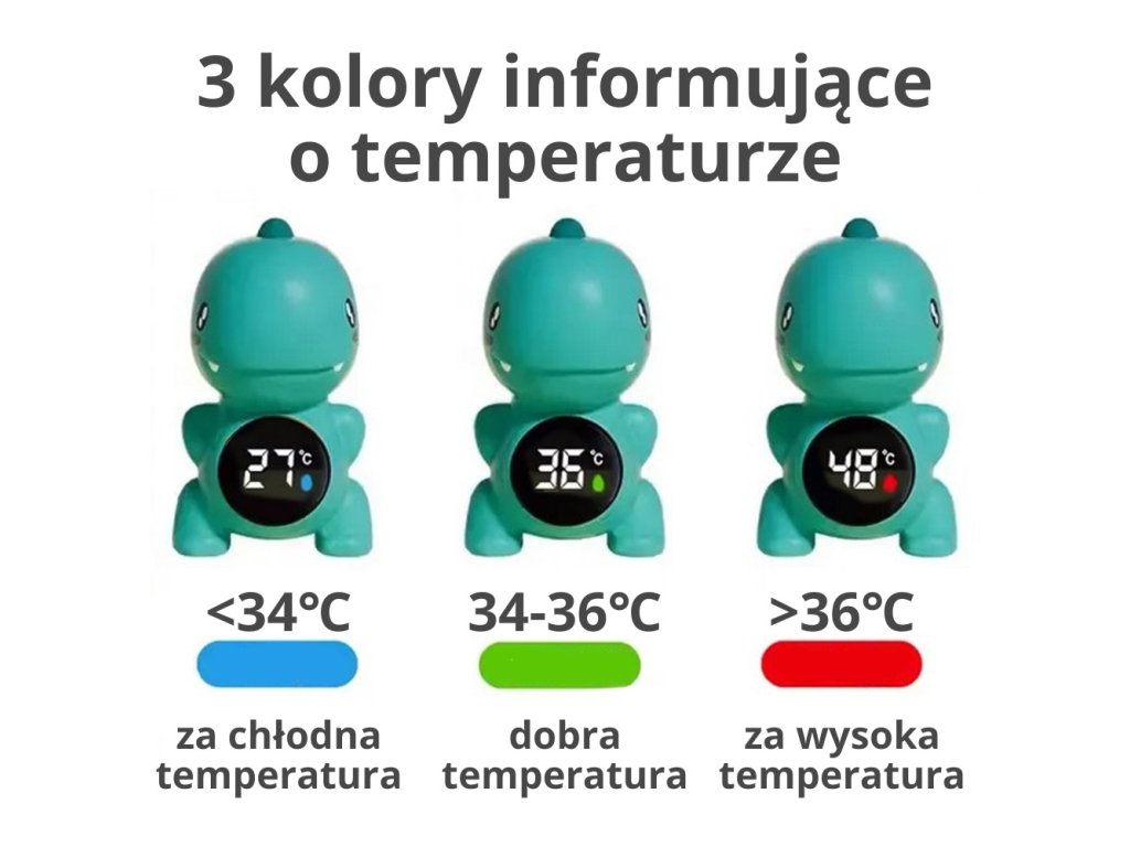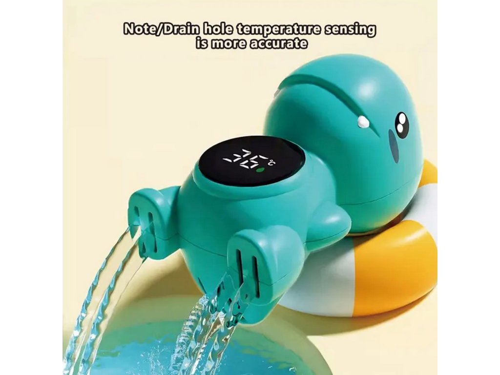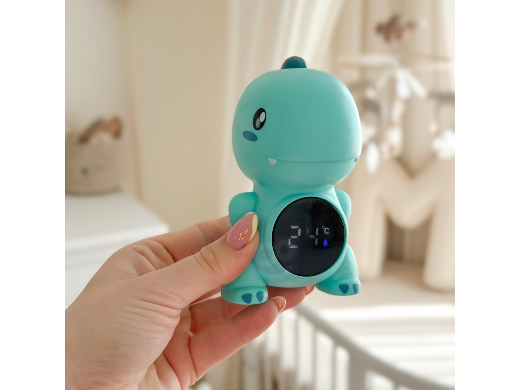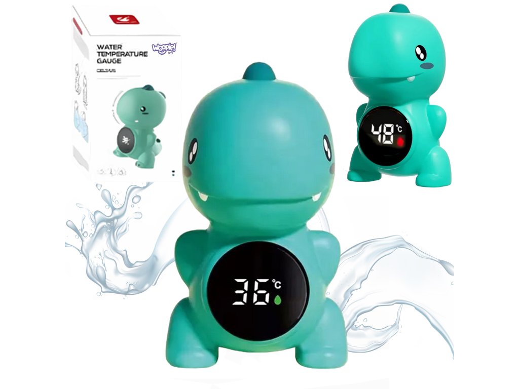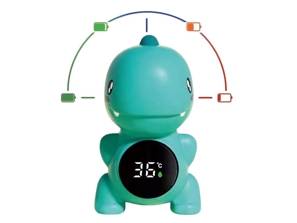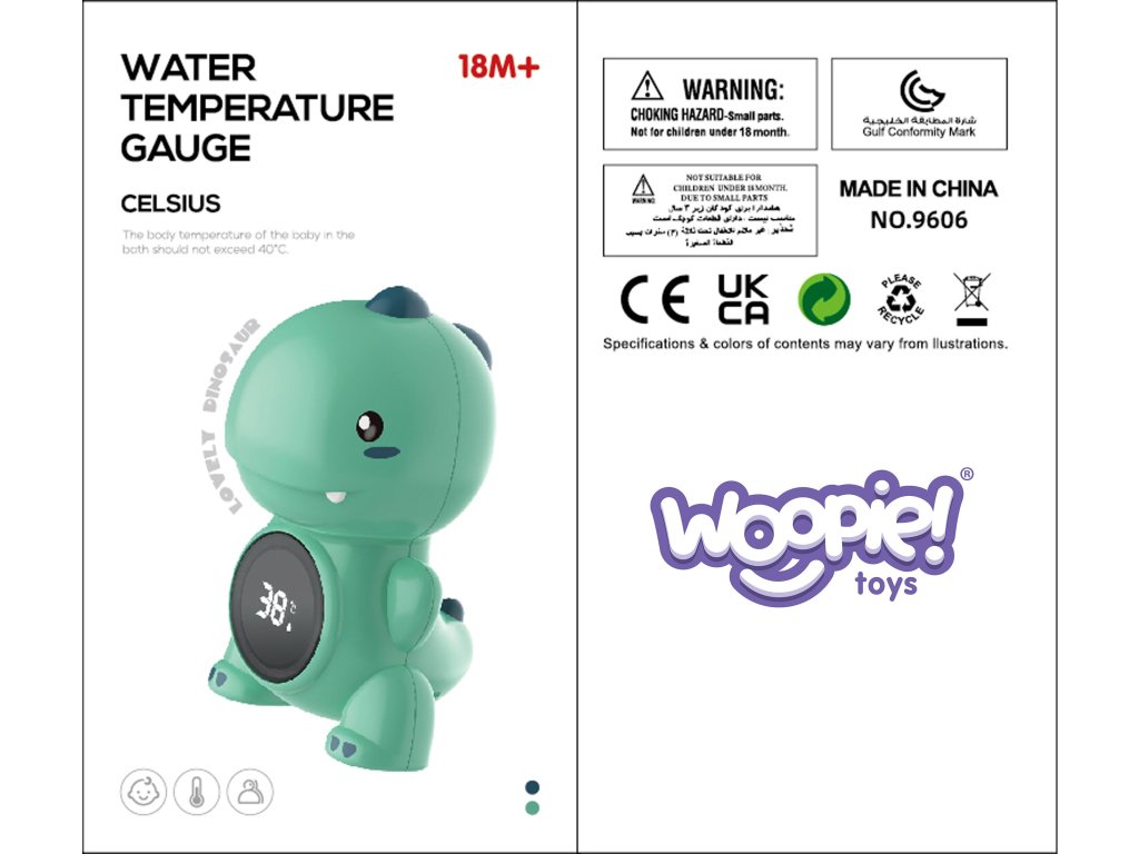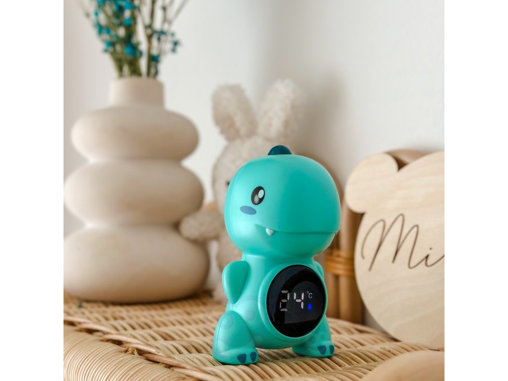 Teplomer v tvare dinosauraod spoločnostiWOOPIEje hračka, s ktorou sa meranie teploty vody stane potešením. Ideálna na použitiepočas kúpania kúpeľ, bazén alebo na meranie izbová teplota.Teplomer sa ľahko používa azabezpečuje presné meranie. Dinoje vyrobená z bezpečných materiálov a vďaka veselému dizajnu si ju obľúbia deti aj rodičia.