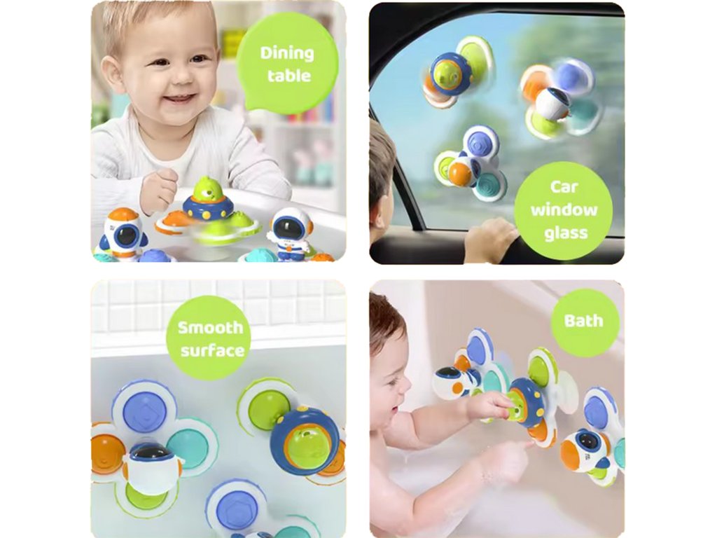 Sada vesmírnych spinnerov od značkyWOOPIEurobí na vaše dieťa veľký dojem. Súprava obsahuje3 ks. spinnery: Mimozemšťan, vesmírna raketa a kozmonaut. Dieťa môže spinnery vziať so sebou a vďaka gumičke ich pripevniť kdekoľvekprísavky. Spinner môžete pripojiť k obomzasklievanie počas cesty a nakúpele počaskúpele (hračka môže byť namočená). Ložiská spinnera zaručujúdlhodobé obrat. Odnímateľné prvky sa dajú ľubovoľne kombinovať. Hračky majú gumové prvky s rôznymi povrchmi, ktorérozvíja zmysly a pôsobí ako prostriedok na uvoľnenie stresu. Hravé cvičeniaobratnosť rúk a zlepšujekoordinácia rúk a očí. Tieto hračky môžu pôsobiť ako nástroj na relaxáciu a zníženie stresupomáhať pri dosahovaní stav pokoja a mieru.