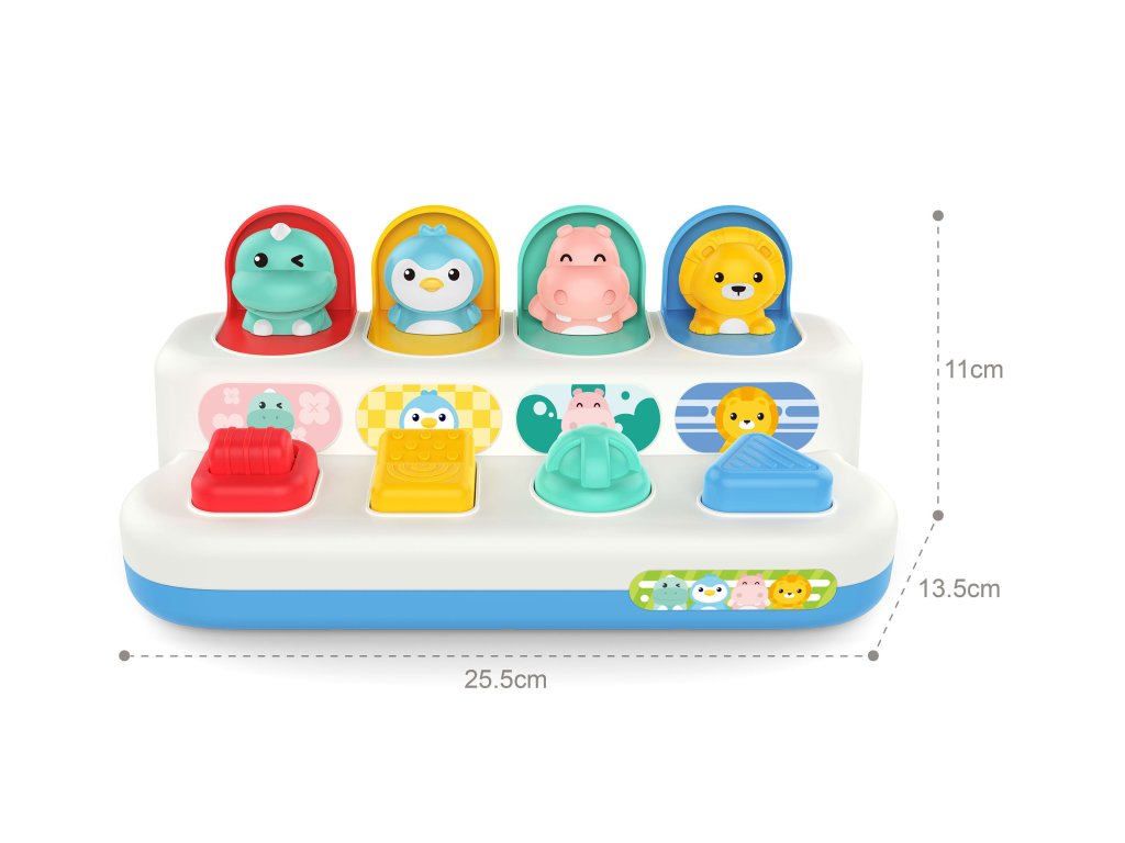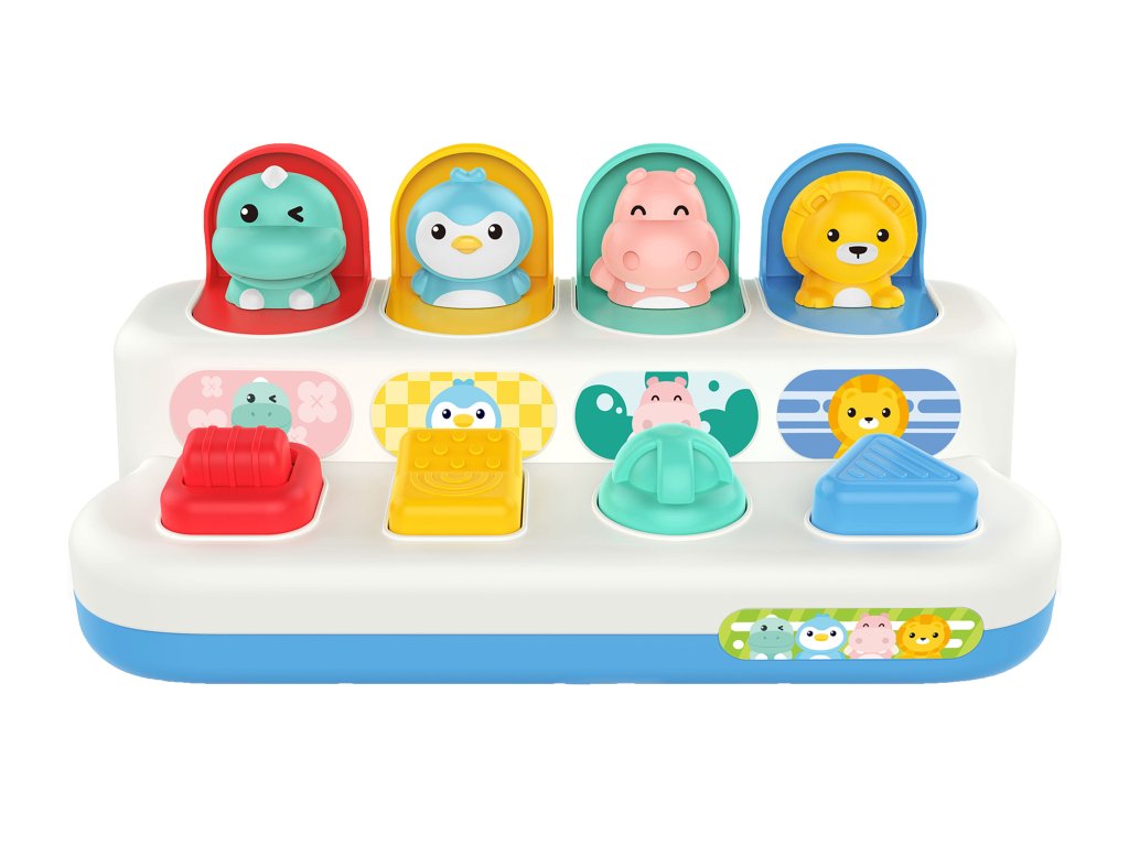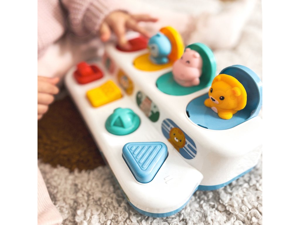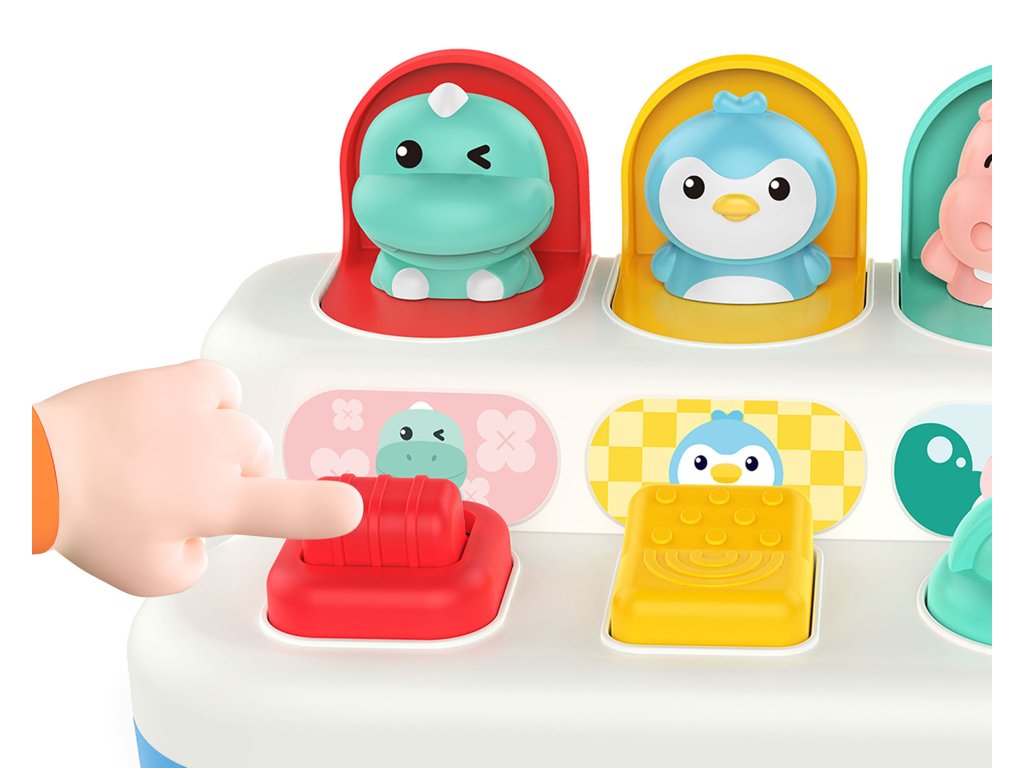 Vzdelávacia hračka Pop-up zvieratkoPop-Up od značkyWOOPIE Baby, je interaktívna, vzdelávacia hračka, ktorá spája hru s učením a zmyslovou stimuláciou pre najmenších. Stláčaním tlačidiel, pohybom gombíkov alebo pohyblivých častífarebné zvieratá čo stimuluje zvedavosť a zapája dieťa do hry. Mechanizmus pop up vtiahne batoľa do deja a rôzne spôsobyinterakcia rozvíjať zručnosť malých rúk a motorickú koordináciu.Farebné prvky podporujú poznávanie príčin a následkov a podporujú rozvoj zmyslov. Skvelá hračka na každodennú hru aj ako kreatívny darček pre dieťa od približne 18 mesiacov.