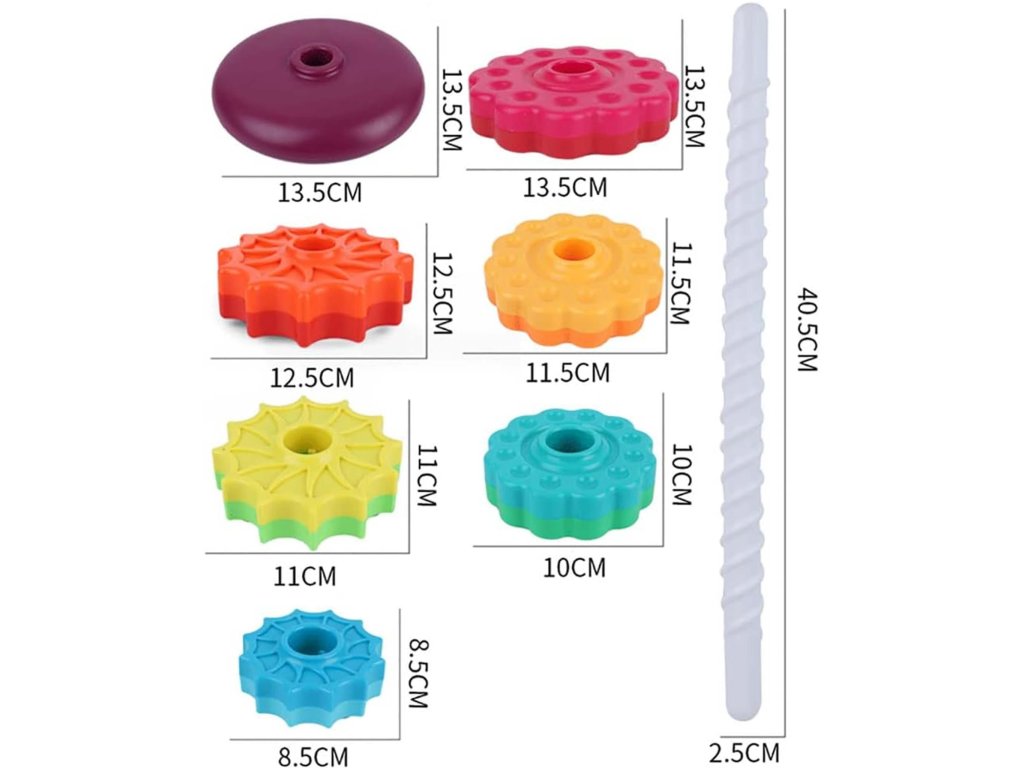 - Súprava obsahuješesť hviezdičkových diskovktoré sa dajú ukladať na seba a vytvárajú farebnú a otáčajúcu sa pyramídu