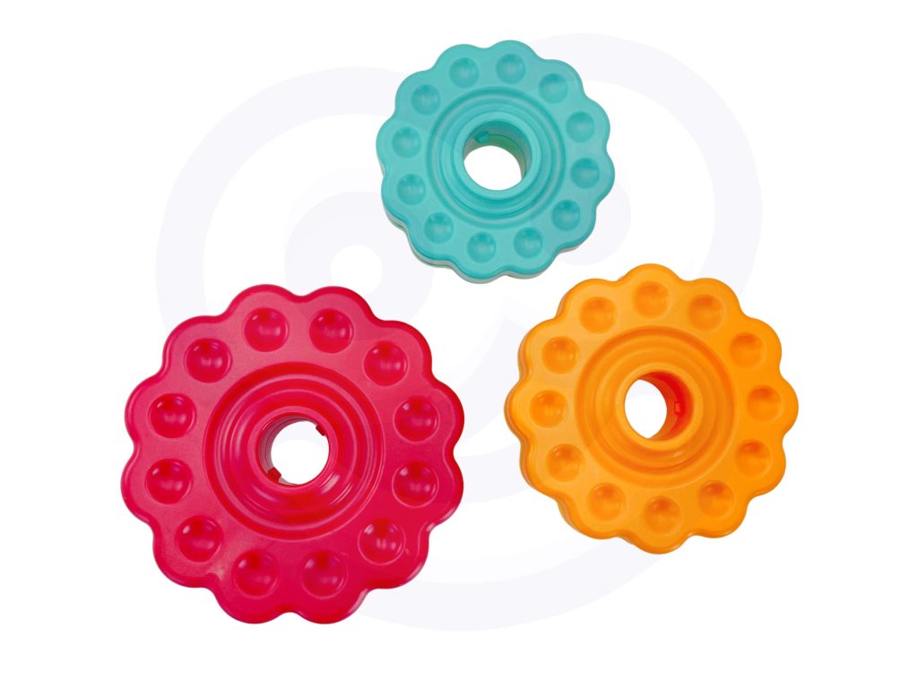 - Malé motorické zručnosti: Manipulácia s kotúčmi podporuje rozvoj jemnej motoriky a koordinácie oko-ruka.
