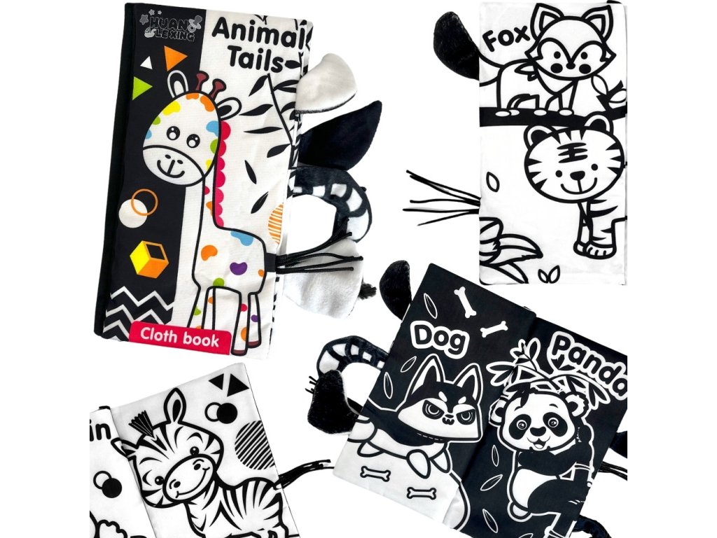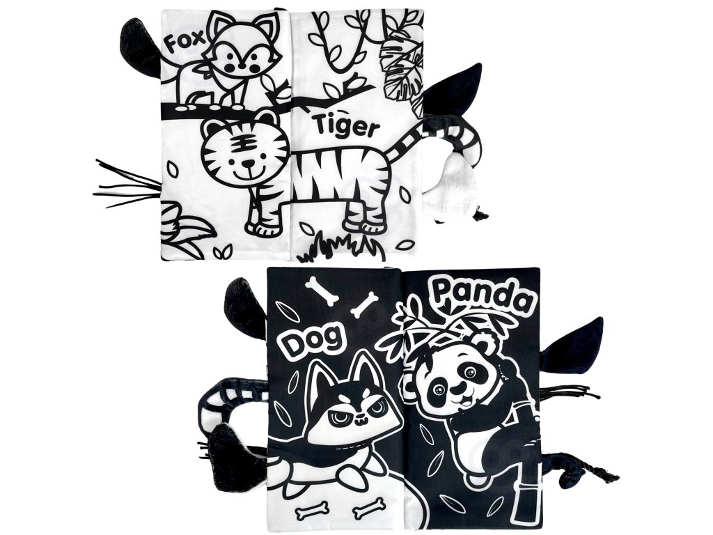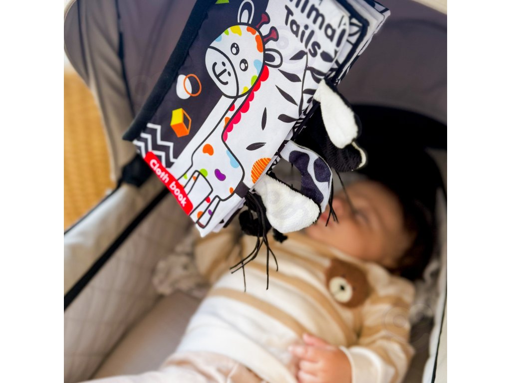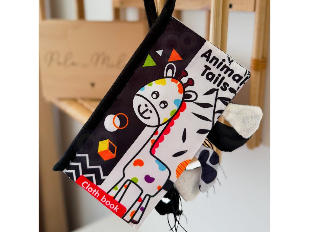 Kontrastná brožúra od značkyWoopie vytvorené špeciálne pre batoľatá. Šušťanie a veľmi mäkké hmatové stránky rozvíjajú zmysly dieťaťa tým, že pôsobia akozmyslová funkcia.Čiernobiele ilustrácie trénovať zrak a vnímavosť. Chvosty rôznych zvierat trčia na každej strane; ich chytaním si batoľa precvičujekoordinácia oko-ruka. Brožúra sa môže použiť akozáves na detský kočík alebo postieľkuzapínanie na suchý zips.