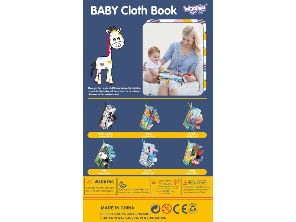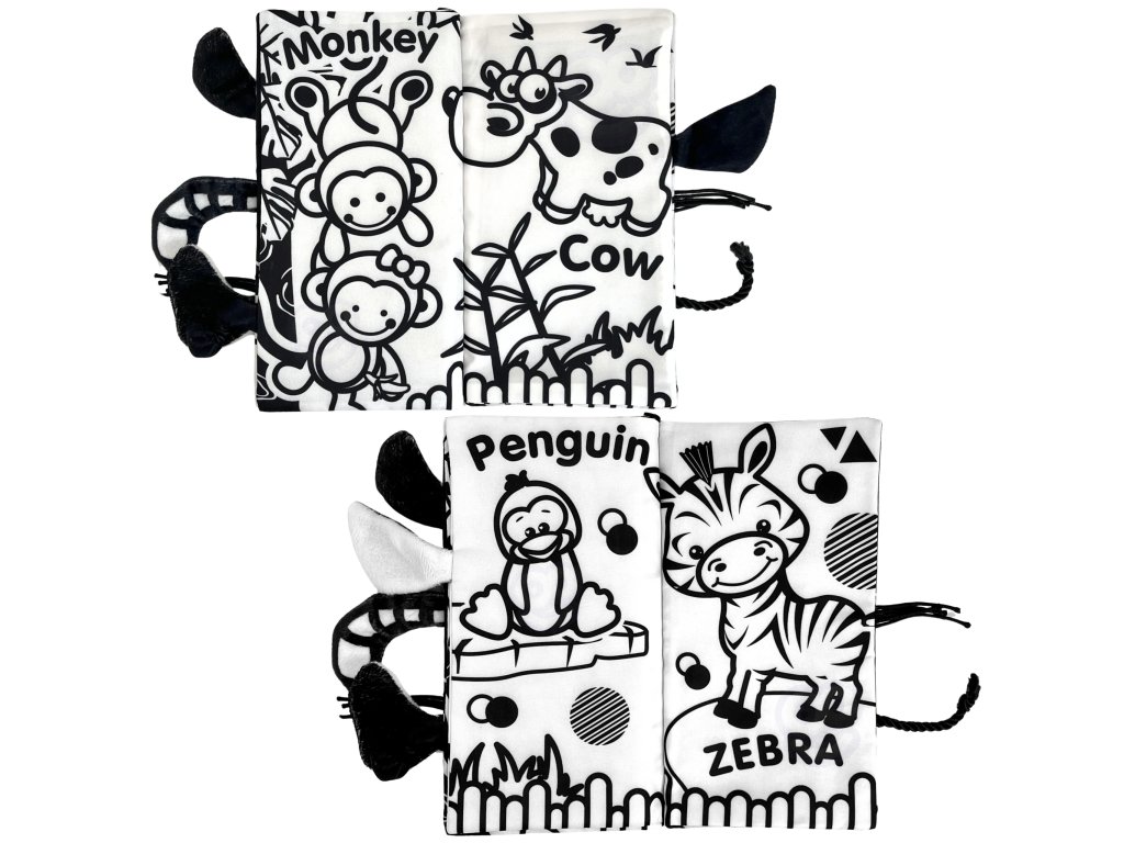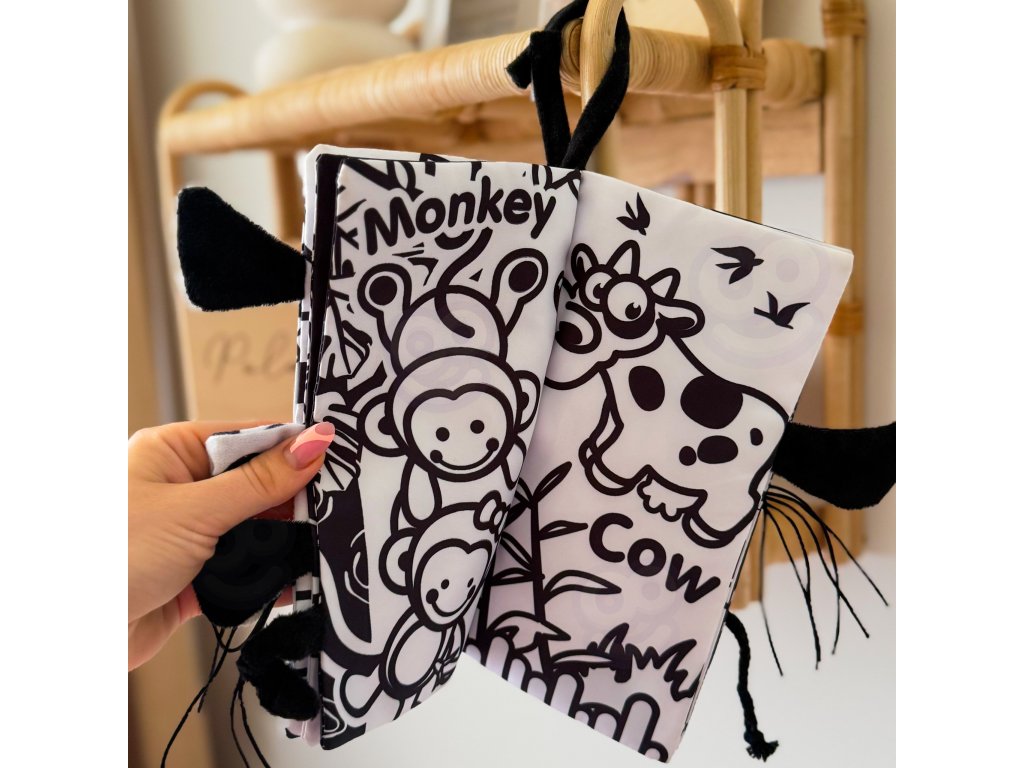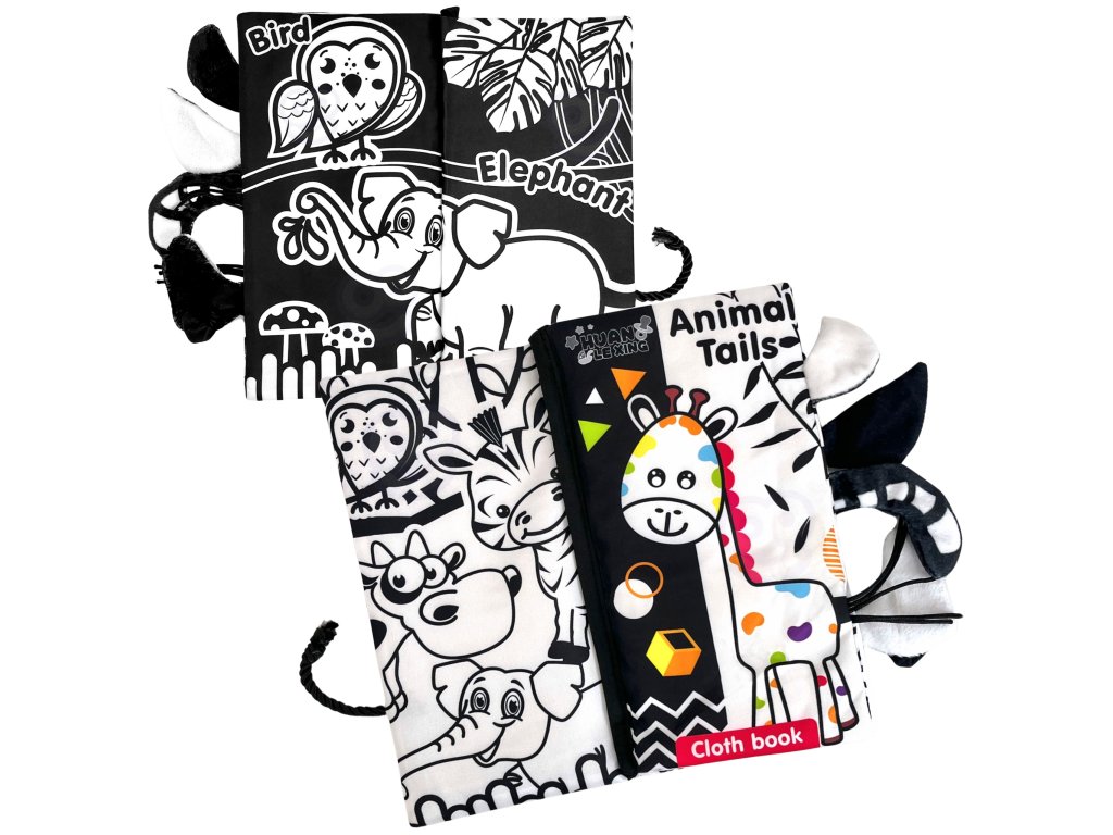 Kontrastná brožúra od značkyWoopie vytvorené špeciálne pre batoľatá. Šušťanie a veľmi mäkké hmatové stránky rozvíjajú zmysly dieťaťa tým, že pôsobia akozmyslová funkcia.Čiernobiele ilustrácie trénovať zrak a vnímavosť. Chvosty rôznych zvierat trčia na každej strane; ich chytaním si batoľa precvičujekoordinácia oko-ruka. Brožúra sa môže použiť akozáves na detský kočík alebo postieľkuzapínanie na suchý zips.