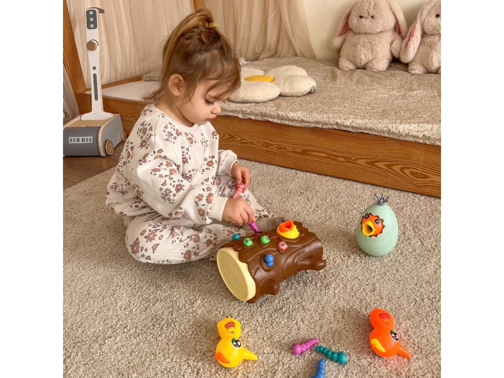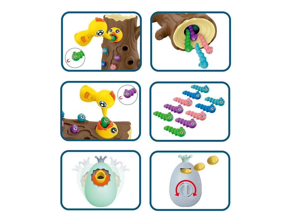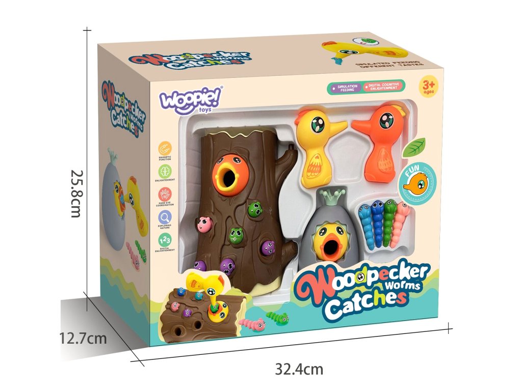 Hra spočíva v kŕmení hladného mláďaťa červami ukrytými v kmeni stromu. Dieťa pomocou magnetických zobákov ďatľov "chytá" červy a prenáša ich na mláďa. Hra si vyžaduje presnosť a sústredenie, vďaka čomu si deti precvičia manuálnu zručnosť a zároveň sa zabavia. Po skončení hry sa dajú červíky z kmeňa vysypať a všetko je pripravené na ďalšie kolo