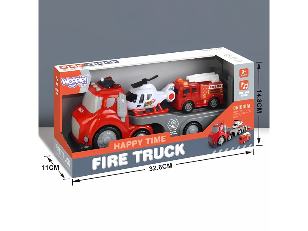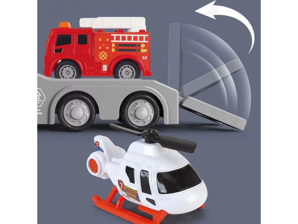 ✔️ Sada obsahuje:príves,vrtuľník i hasičské auto