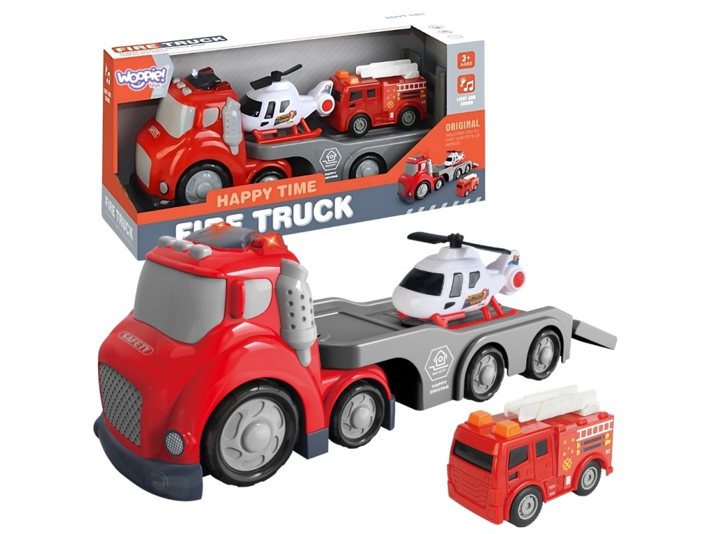 KaravanHasičské vozidlo zo sérieCITY TRUCK umožní vášmu dieťaťu prevziať úlohu hasiča. Vyrobené zvysokokvalitné materiály súprava sa skladá z veľkého červeného nákladného auta s prívesom, vrtuľníka a malého hasičského auta. Vďaka svetelným a zvukovým efektom bude hra ešte realistickejšia a napínavejšia. Je to ideálna súprava na kreatívnu hru na hasičov alebo záchranné operácie.