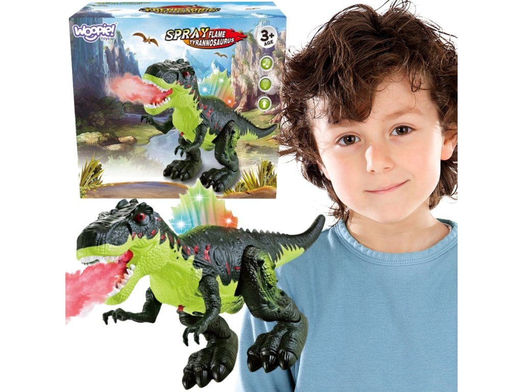 Veľkolepý interaktívny dinosaurus T-Rex s funkciou hmlového spreja imitujúceho plameň od značkyWoopie. Táto úžasná hračka ponúkanezabudnuteľný zážitok vďaka funkciichôdza vpred, pohyblivá čeľusť, žiariace chrbát a autentické zvuky revu. Tento dinosaurus je ideálny pre batoľatá, ktoré chcú doma zažiť prehistorické dobrodružstvá.