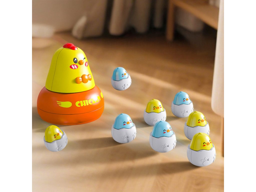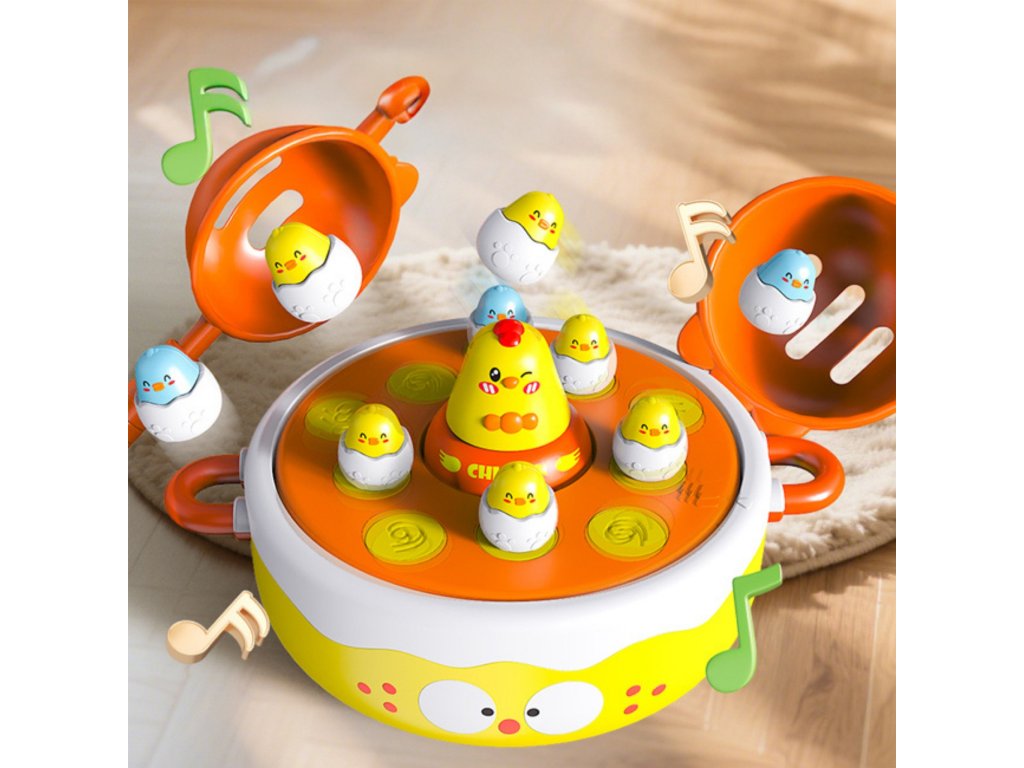 - - Centrálna stránkahudobný prvok a rotujúce "hniezdo", na ktorom kurčatá náhodne poskakujú