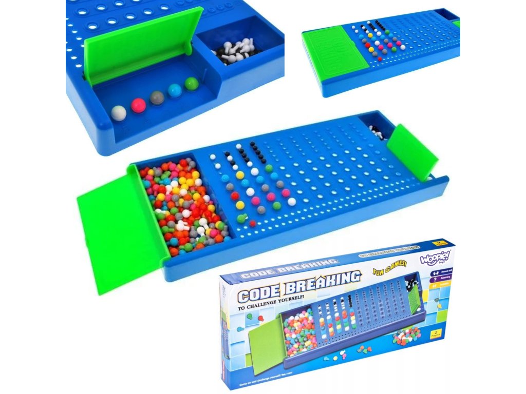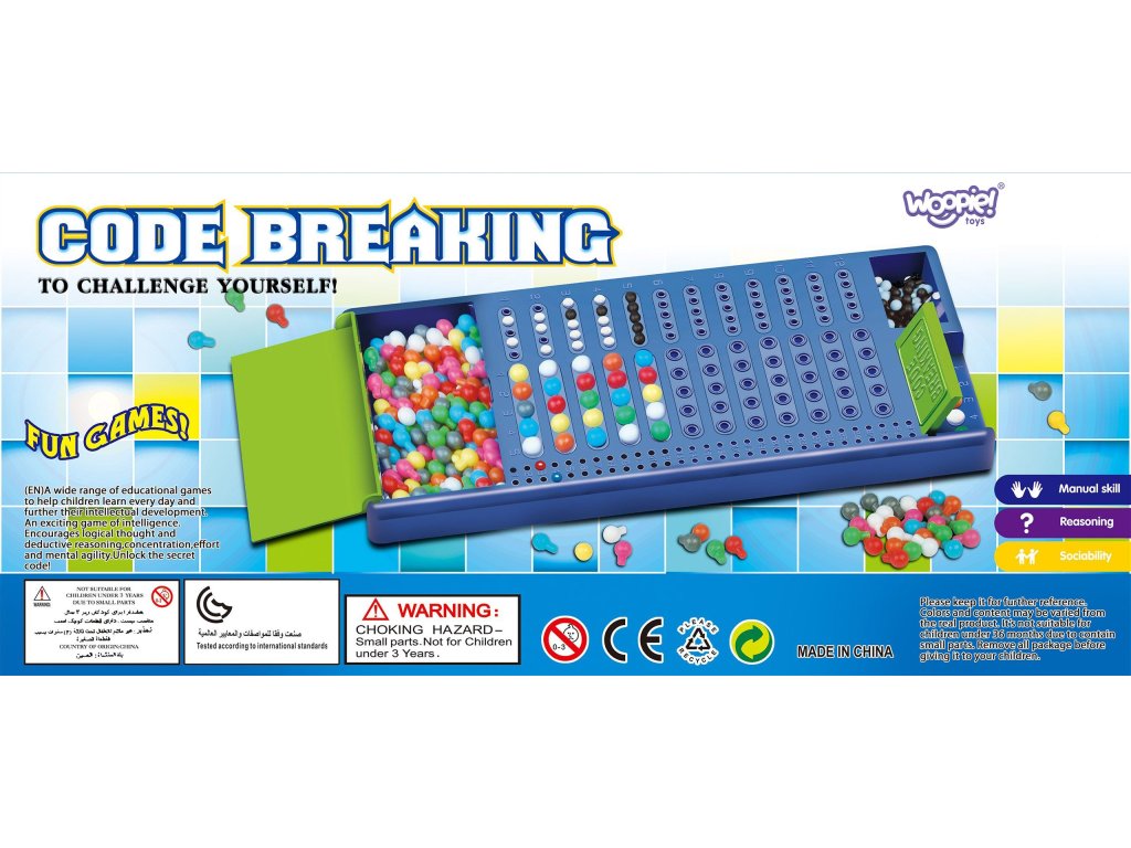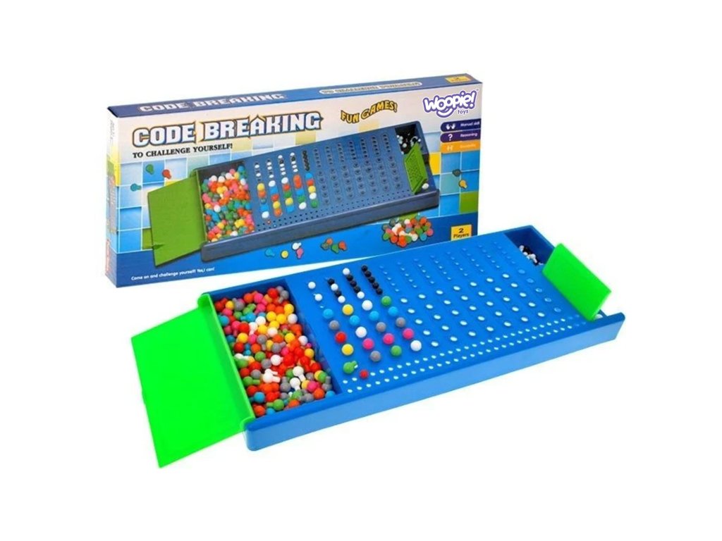 Logická hra Break the Code od značkyWOOPIE je stolová hra určená predve osobyhra spočíva v tom, že jeden z nich uhádne skrytý kód na čo najmenší počet pokusov. Veselá hra na obratnosť stimuluje rozvoj dieťaťa naniekoľko úrovní súčasne. Zlepšuje zručnostirozpoznávanie farieb,koordinácia rúk a očí ikomunikácia. Jedným z najúčinnejších spôsobov, ako u detí rozvíjať medziľudské zručnosti, je hrať s blízkymi rôzne hry.