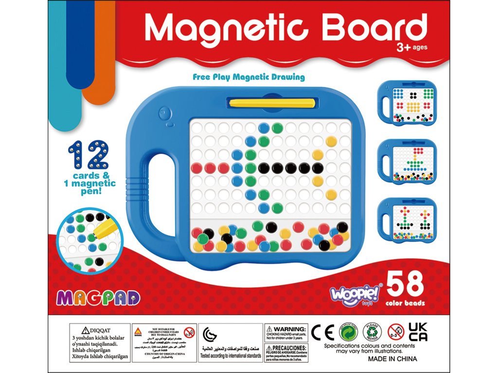 Magnetická tabuľa MagPad od značkyWOOPIE otvorí vášmu dieťaťu dvere do sveta kreativity a vzdelávania. S touto jedinečnou tabuľou má vaše dieťa možnosťvytvárať jedinečné vzory a mozaiky. Okrem samotnej tabule sada obsahuje magnetickú značku a 84 magnetických tlačidiel na vytváranie. Jediným obmedzením je predstavivosť a kreativita - batoľa môže voľne usporiadať vzory podľa vlastných nápadov.Tlačidlá sú pevné a odolnéa stohovanie jeintuitívne a jednoduché. Táto sada je nielen zábavná, ale aj vynikajúcanástroj na učenie a rozvíjať manuálne zručnosti, koncentráciu a predstavivosť.