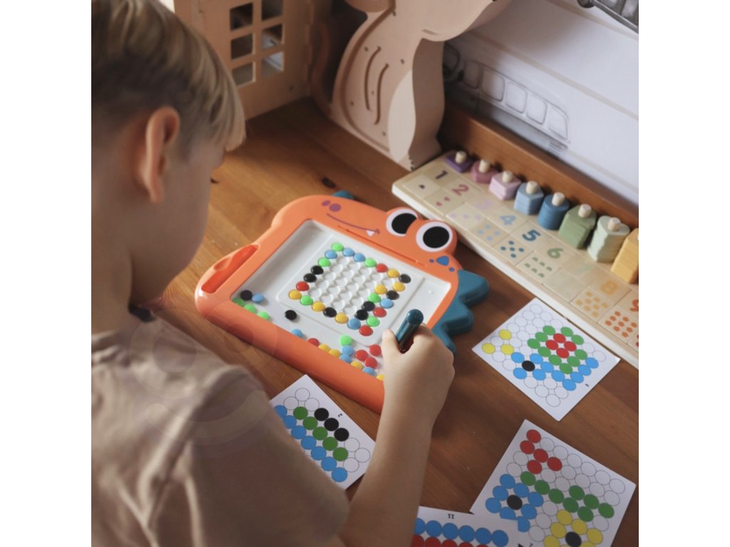 Magnetická tabuľa MagPad od značkyWOOPIE otvorí vášmu dieťaťu dvere do sveta kreativity a vzdelávania. S touto jedinečnou tabuľou má vaše dieťa možnosťvytvárať jedinečné vzory a mozaiky. Okrem samotnej tabule súprava obsahuje magnetickú značku a magnetické tlačidlá na vytváranie. Jediným obmedzením je predstavivosť a kreativita - batoľa môže voľne usporiadať vzory podľa vlastných nápadov.Tlačidlá sú pevné a odolnéa stohovanie jeintuitívne a jednoduché. Táto sada je nielen zábavná, ale aj vynikajúcanástroj na učenie a rozvíjať manuálne zručnosti, koncentráciu a predstavivosť.
