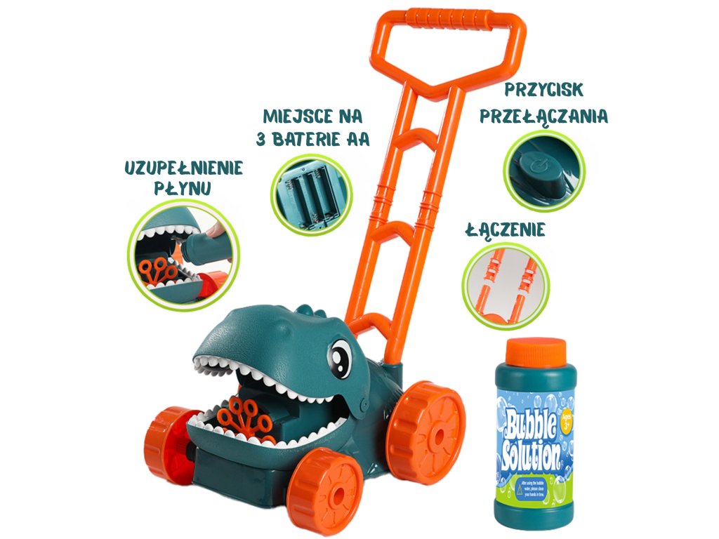 Preskúmajte magický svet bublín a dinosaurov! Naša stránkaBublinová dinosauria kosačka od značkyWoopie je hitom každej záhradnej párty - spája pohyb, zábavu a prehistorické dobrodružstvo v jednom!