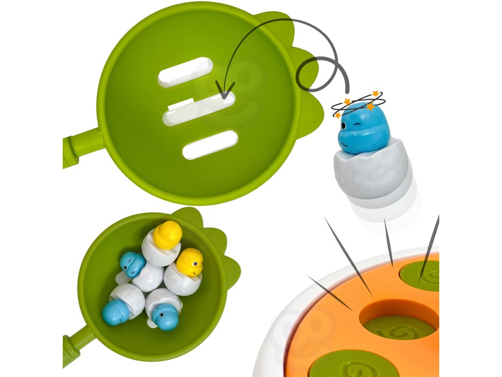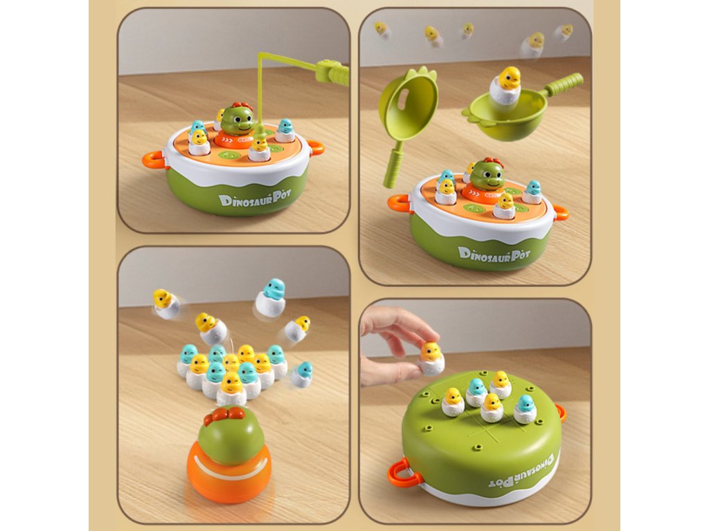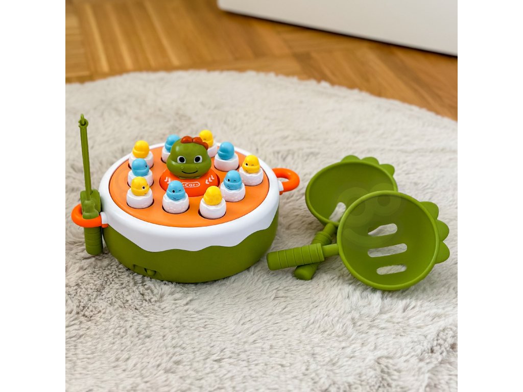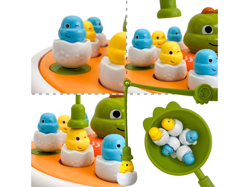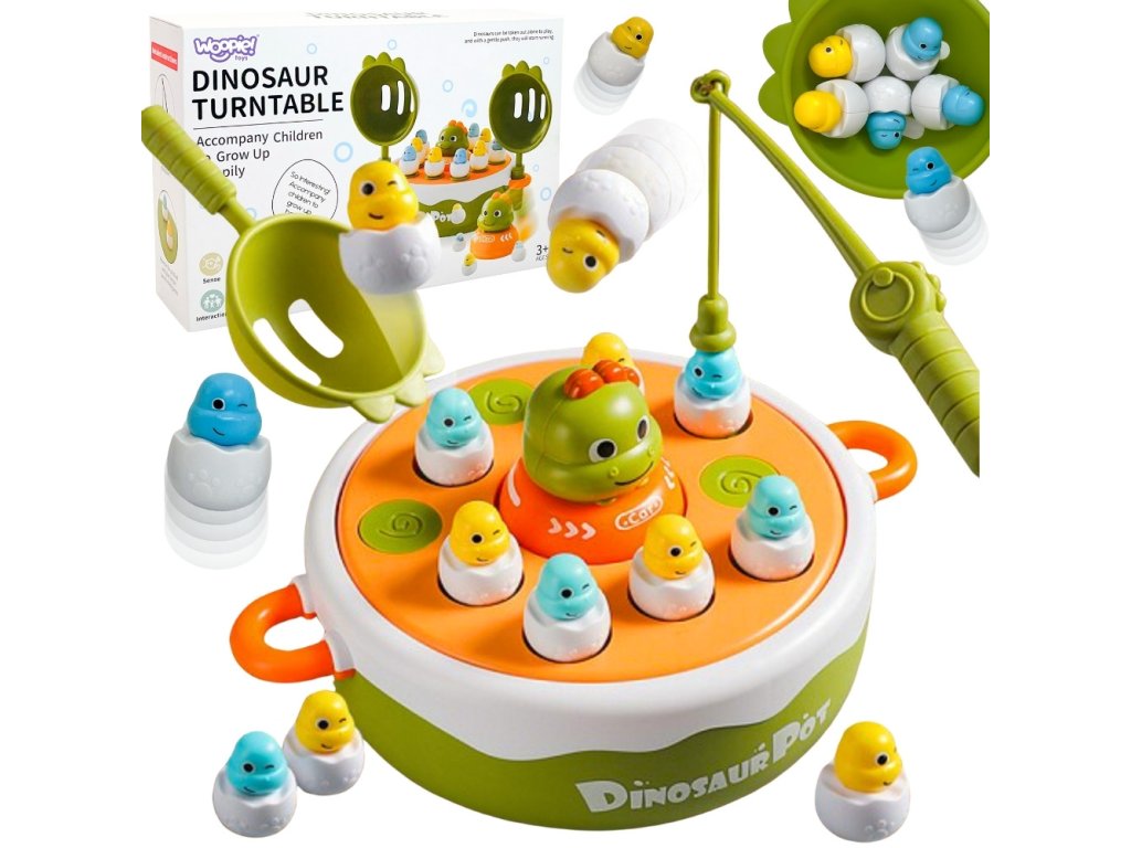 Vydajte sa na prehistorickú cestu s fantastickou hrouRybolov dinosaurov od značkyWoopie! Ide o inovatívnu kombináciu klasickej hry na chytanie s dynamickým katapultom, ktorú dopĺňajú rozkošné figúrky dinosaurov v škrupinách. Táto pútavá hračka je dokonalým spôsobom, ako u najmenších rozvíjať zručnosť, predstavivosť a zmysel pre objavovanie. Navyše, aby zábava trvala ešte dlhšie a poskytovala rozmanitosť,na zadnej strane hlavnej rybárskej plošiny sa nachádza pole na hranie klasickej hry tic-tac-toe! Okrem toho,veľký dinosaurus v súprave funguje ako hračkárske autočo otvára dvere k ešte kreatívnejším herným scenárom. Hra bola navrhnutá tak, abymohli hrať dve osoby narazktorá podporuje spoločné trávenie času a zdravú súťaživosť. Vďaka farebnému dizajnu a rôznym herným možnostiam si vaše dieťa zamiluje svet prehistorických tvorov a bude sa učiť prostredníctvom radostnej hry!