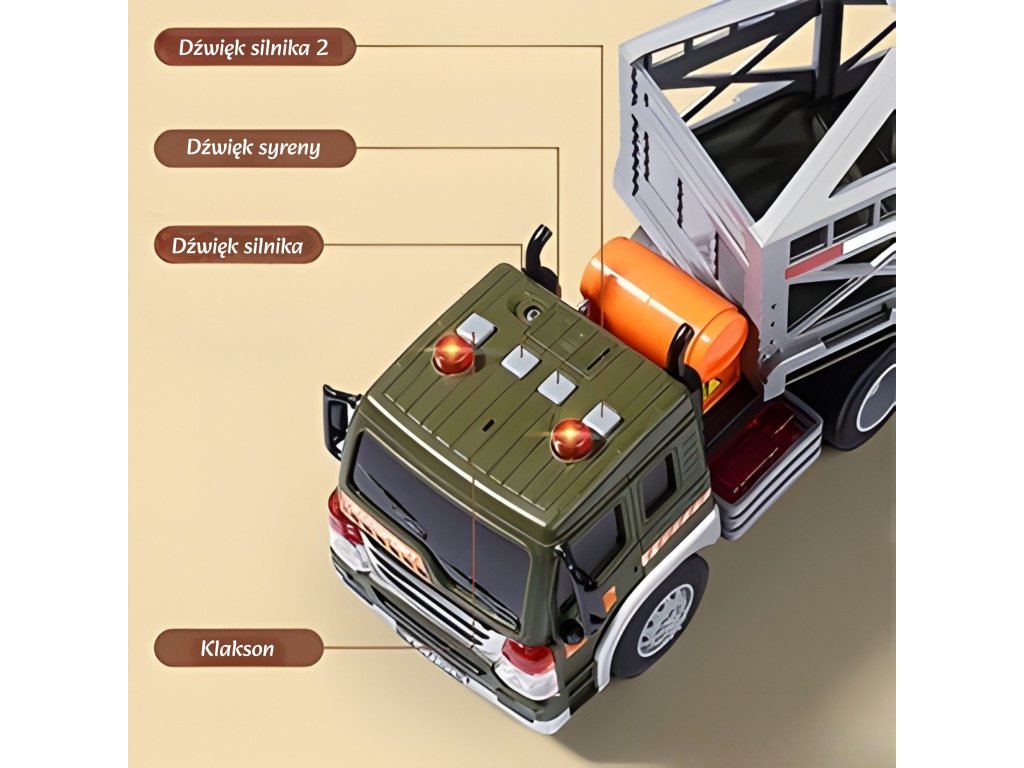 - - vybavenésvetelné a zvukové efekty (4 tlačidlá: štartovanie motora, klaksón, spiatočka, siréna)