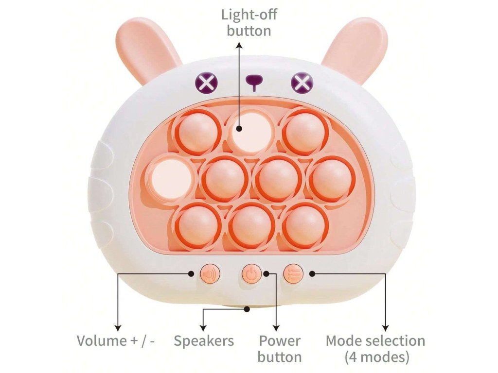 HraPOP IT Bunnyje antistresová hračka, ktorá je vhodná už pre najmenších. Hra vydáva veselé zvuky, ktoré deti povzbudzujú k hre a robia hru zaujímavejšou. Hračka je malá, takže ju možno ľahko vziať so sebou. Pop Itzábava pre deti a dospelýchhra má veľký úspech. Rozvíja myseľ, manuálne zručnosti, koordináciu oko-ruka, trénuje postreh a pomáha bojovať proti stresu.