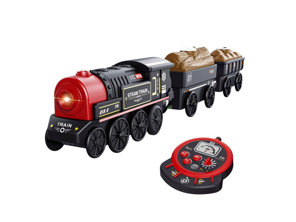 | Rozmery výrobku: | Lokomotíva + 2 vagóny: 30 x 3,5 x 5 (cm) Diaľkové ovládanie: 9 x 11 (cm) |