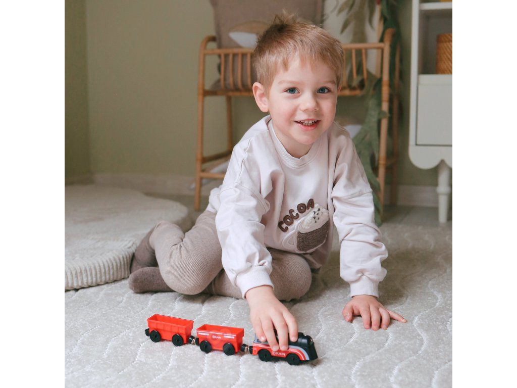 Elektrická značková lokomotívaWOOPIE umožňuje mnoho hodínkreatívna hra. Veľká zábava pomáharozvíjať motorické zručnosti, konštrukčné zručnosti, počítanie vlakov a predovšetkým -nie je nudný.Táto hračka je ideálna pre deti, ktoré sa učiaplaziť sa! Vaše dieťa bude mať záujem naháňať a chytať vlak! Nespornou výhodou lokomotívy je ajmalý počet prvkov. To zaručuje, že stavba vláčika netrvá dlho, a tak batoľa neodradí.