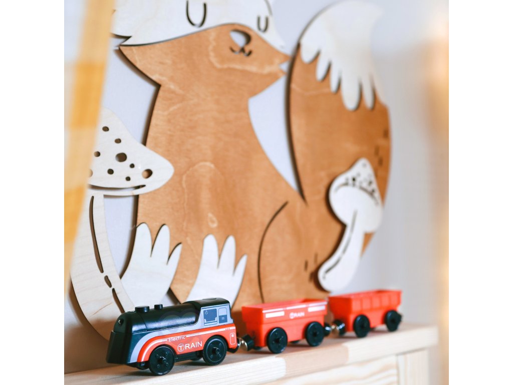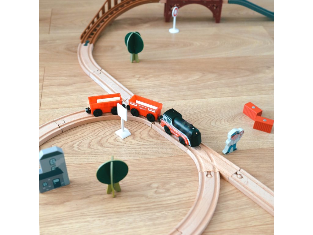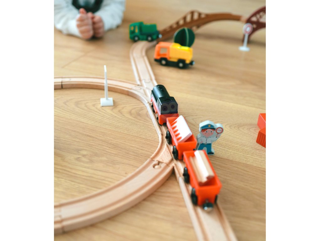 - Vláčik je vhodný pre väčšinu drevených koľají od známych výrobcov, napr. Brico, IKEA, Little Steps, ELC, Woodyland, Tesco, Carousel, Eichhorn atď... (šírka koľají - 4 cm, šírka náprav 2,5 cm),