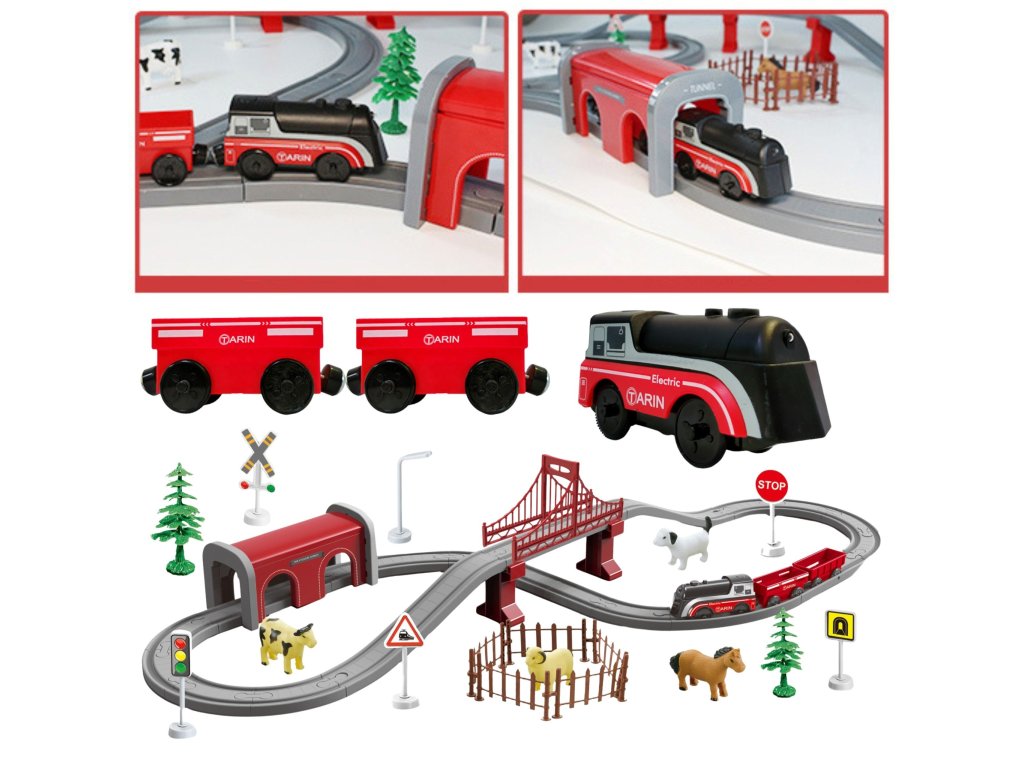 WOOPIE Elektrická vlaková súprava Lokomotíva koľajnice Zvieratá na farme 70 ks
