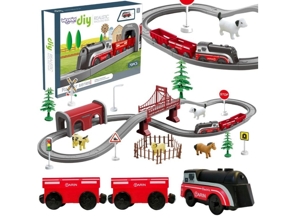 Vyhliadková cesta po farme na palube elektrického vlaku značkyWOOPIE je dobrodružstvo, ktoré nadchne každé dieťa! Táto rozsiahla 70-dielna súprava je skutočným eldorádom pre malých vlakových nadšencov - koľaje vytvárajú vzrušujúcu trasu plnú tunelov, mostov a prekvapení. Magnetické vagóny sa spájajú s uspokojivým cvaknutím a elektrická lokomotíva robí hru ešte realistickejšou a vzrušujúcejšou. Keď vlak prechádza pod červeným tunelom alebo cez most, míňa pasúce sa zvieratá, dieťa objavuje svet plný možností na vytváranie vlastných príbehov.