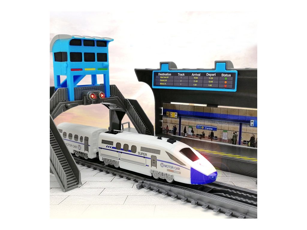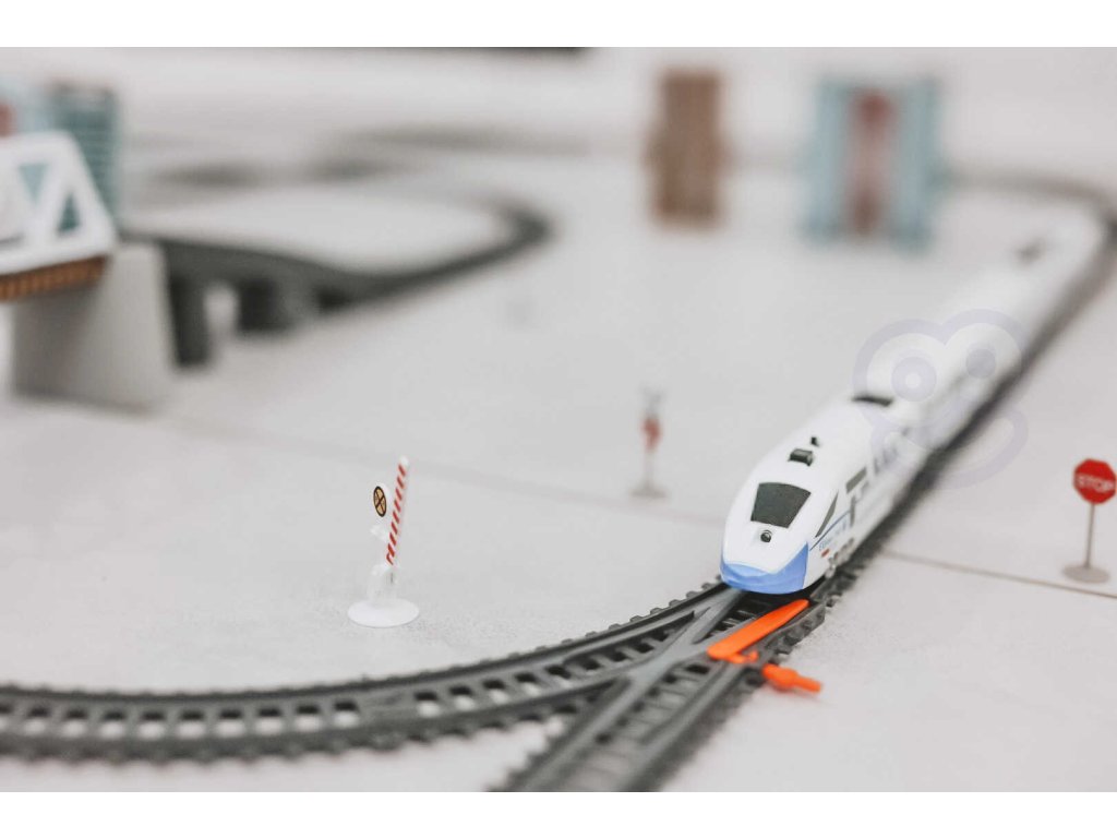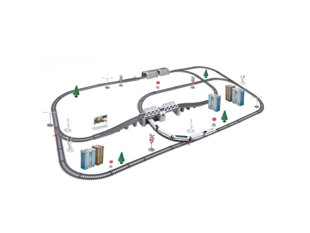 - - sada obsahuje:vlak Pendolino - 5 vlakov, pohyblivý, zdvíhací most, železničný tunel, značky, atrapy, zábrany, stromy, lampáše,