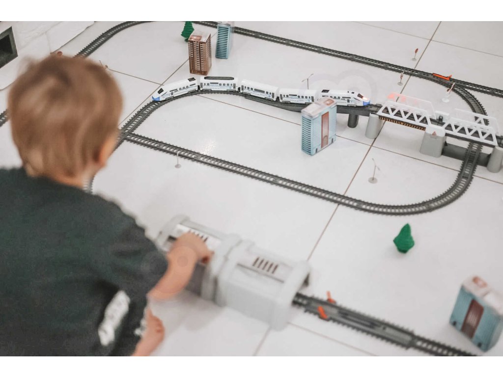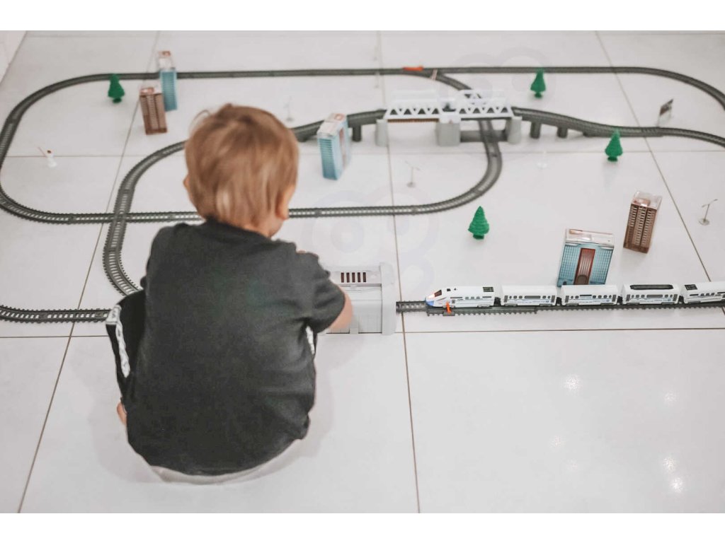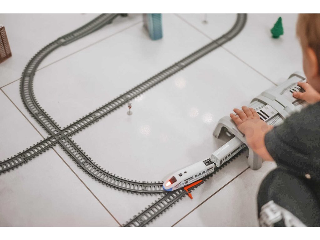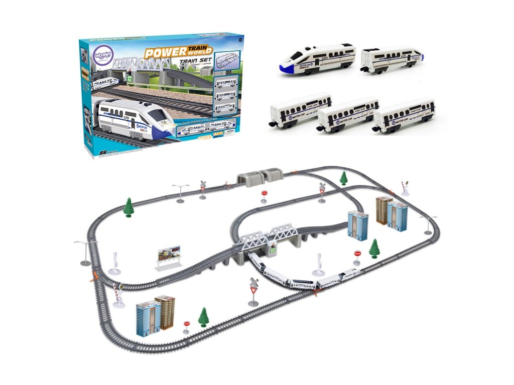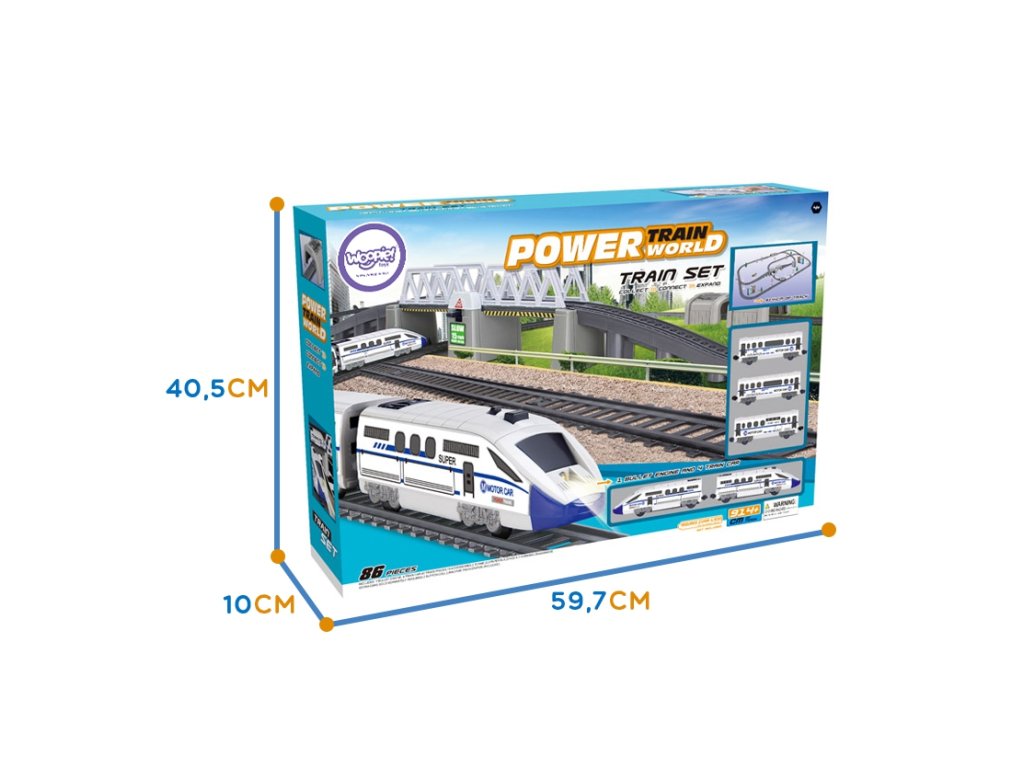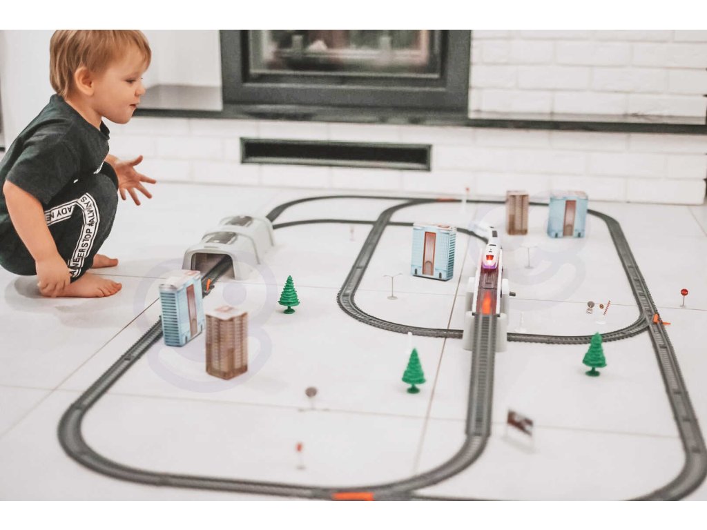 Elektrický vlak detský osobný vlak s dĺžkou 914 cm a atrakciou v podobe padacieho mosta bude skutočným zážitkom pre každého malého vodiča. Moderný vláčik je starostlivo spracovanýbezpečná hračka. Železnicu poháňa moderná lokomotíva,luminous počas jazdy sa rozsvieti na červeno. Hračka má tiežmožnosť regulácie rýchlosti. Zdvíhací most sa zdvihne stlačením tlačidla. Batérie sú umiestnené vo vnútri lokomotívy. Tento nádherný model železnice s vagónmi je vyrobený veľmi opatrne, s veľkým dôrazom na detail, ktorý určite poteší každého začínajúceho fanúšika železničných modelov. Určené pre deti staršie ako 3 roky.