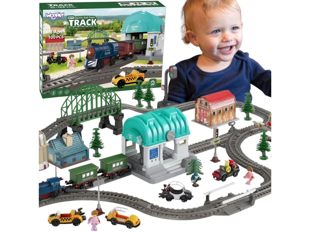 WOOPIE Elektrický vlak Vláčiková dráha XXL Lokomotíva Lokomotíva Town Set 108 ks