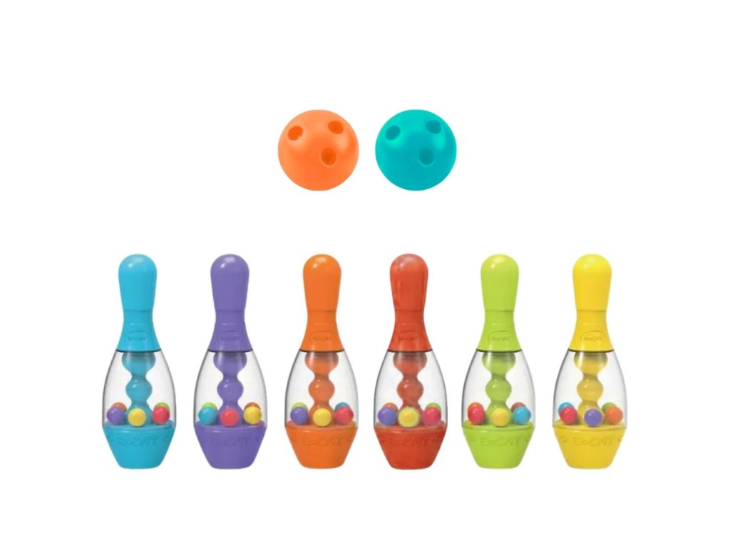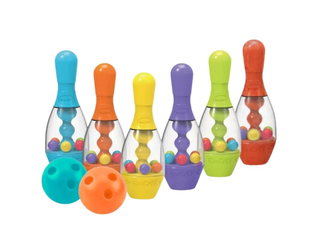 Farebný senzorický bowling od značkyWoopie je všetko, čo deti potrebujú na rozvojmotorické zručnostia zároveňskvelé, pričom zabaviť. Súprava obsahuje6 pinov a2 loptičky vyrobené zsoft materiál. Nemusíme vás presviedčať, že bowling bude pre vaše dieťatko skvelou zábavou, ale poskytne mu aj mnoho vzdelávacích výhod. Bowlingové kolky majú povrch s rôznymi vzormi, ktoré stimulujúsenzorimotory izmysel dotyk. Hračka sa vyvíjamotorické zručnosti Vaše dieťa okrem iného prostredníctvom:beh ihádzanie.