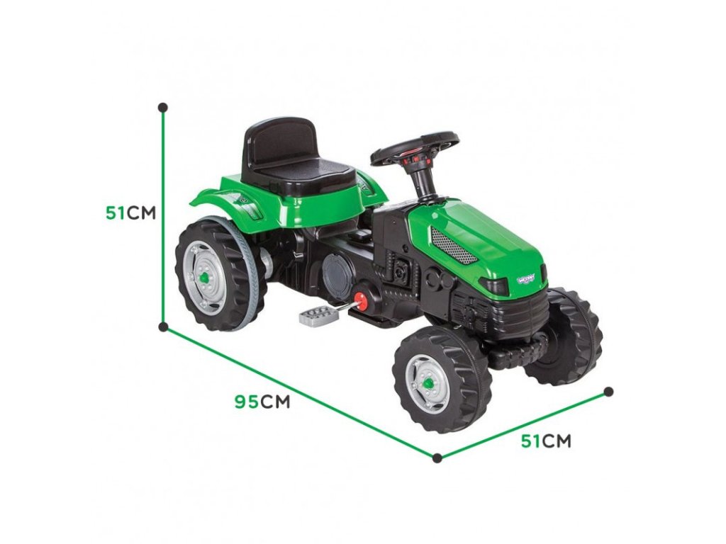 Pedálový traktor Pedálový traktorv zelenej farbe je ideálnou hračkou na začiatok dobrodružstva so šliapacími vozidlami. Produkt je vyrobený z materiálov najvyššej kvalitypriateľskýprostredia a je úplne bezpečný prezdravie detí. Pedálový traktor je ideálnym darčekom pre každé dieťa. Traktor mápatentovaný systém ovládania volantučo uľahčuje riadenie traktora aj tým najmenším používateľom.