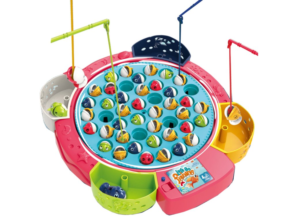 - - Súprava obsahuje: 4 farebné rybárske prúty, hracia doska, 24 rýb