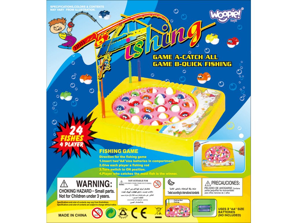 Lov rýb zveri od značkyWOOPIE je skvelou zábavou pre pre celú rodinu! Hra s chytaním rýb vám poskytne množstvo vzrušenia a zábavy na dlhé hodiny. Dajte sa do práce! Vyberte si svoju obľúbenú farbu rybárskeho prúta a spustite hračku. Jazerá sa začnú otáčať a s nimi aj ryby. Každú chvíľu sa každá ryba vynorí z vody -rýchlo ho chyťte na rybársky prút! Víťazom je ten, kto uloví najviac rýb - a to niekedy nie je vôbec jednoduché...