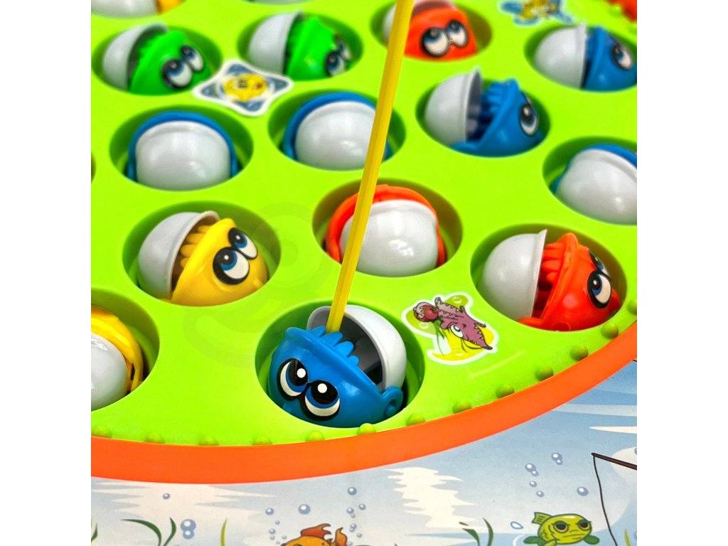 - - Súprava obsahuje: 4 farebné rybárske prúty, hracia doska, 24 rýb