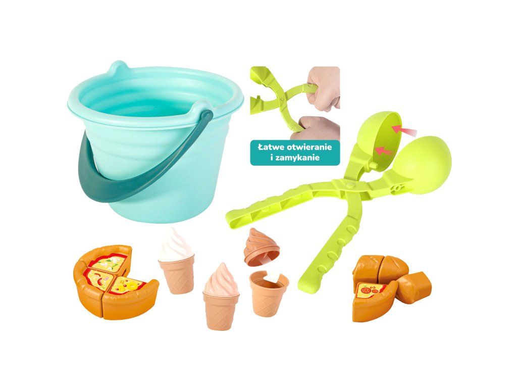 Vedierko na zmrzlinu z piesku značky Woopie je kompletný set hrať, čo bude ďalej rozvíjať  predstavy & kreatívnyklamstvo pri hre s pieskom! Chutne vyzerajúca zmrzlina podnieti predstavivosť vášho dieťaťa a podporí zábavu počas horúcich dní. Súprava obsahuje aj pizza a chliebktoré možno rozdeliť na menšie kúsky. Lyžicu môžete použiť na hru so snehom.