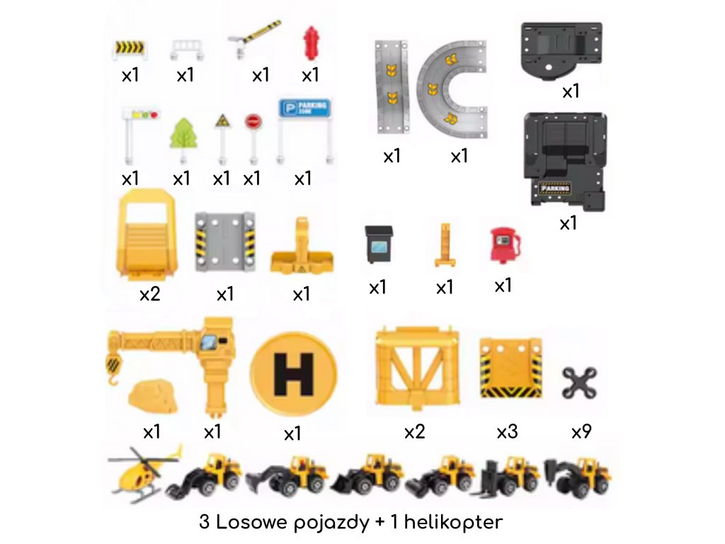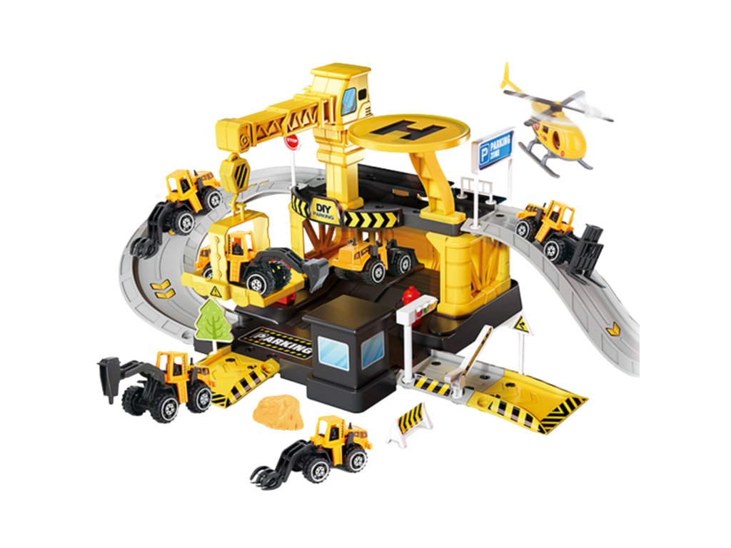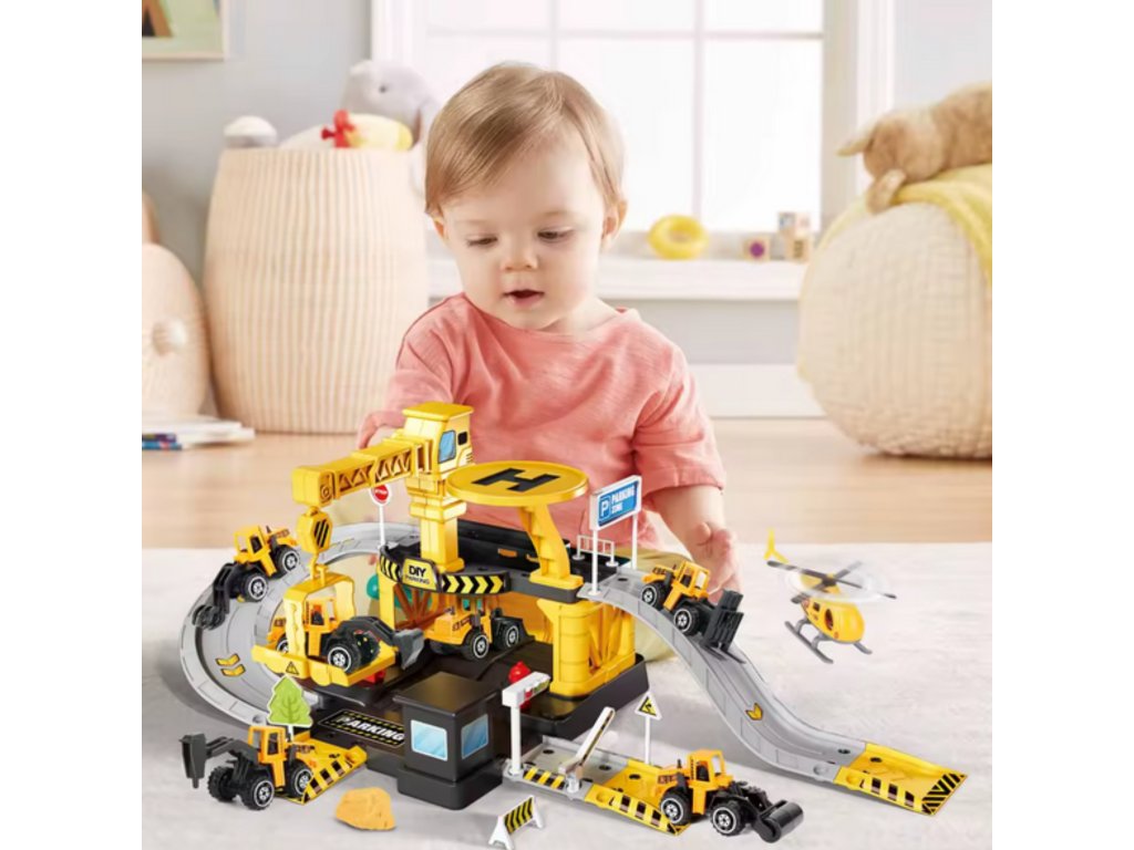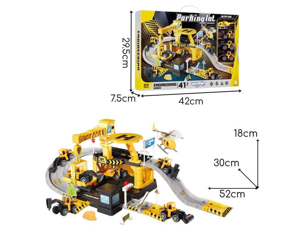 Parkovisko stavebnej spoločnosti od značky Woopie s príslušenstvom a vozidlami súfantastická sadatéma pre každého malého nadšenca do áut a stavebníctva, ktorá premení detskú izbu na skutočnústavenisko! Hračka potešíbohatosť detailovs veľkým počtom prvkov, pestrými farbami a množstvom herných možností. Dvojposchodové parkovisko s rampami, pristávacou plochou pre vrtuľníky a množstvom doplnkov umožňuje dieťaťuvytváranie vlastných scenárov hrať, obmedzená len vašou predstavivosťou. Tri kovové autíčka a vrtuľník využijú každú z funkcií garáže a umožnia vám hrať sa so súrodencami alebo kamarátmi a hrať sa na malého staviteľa.