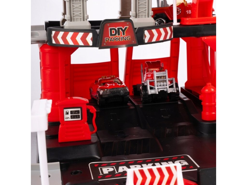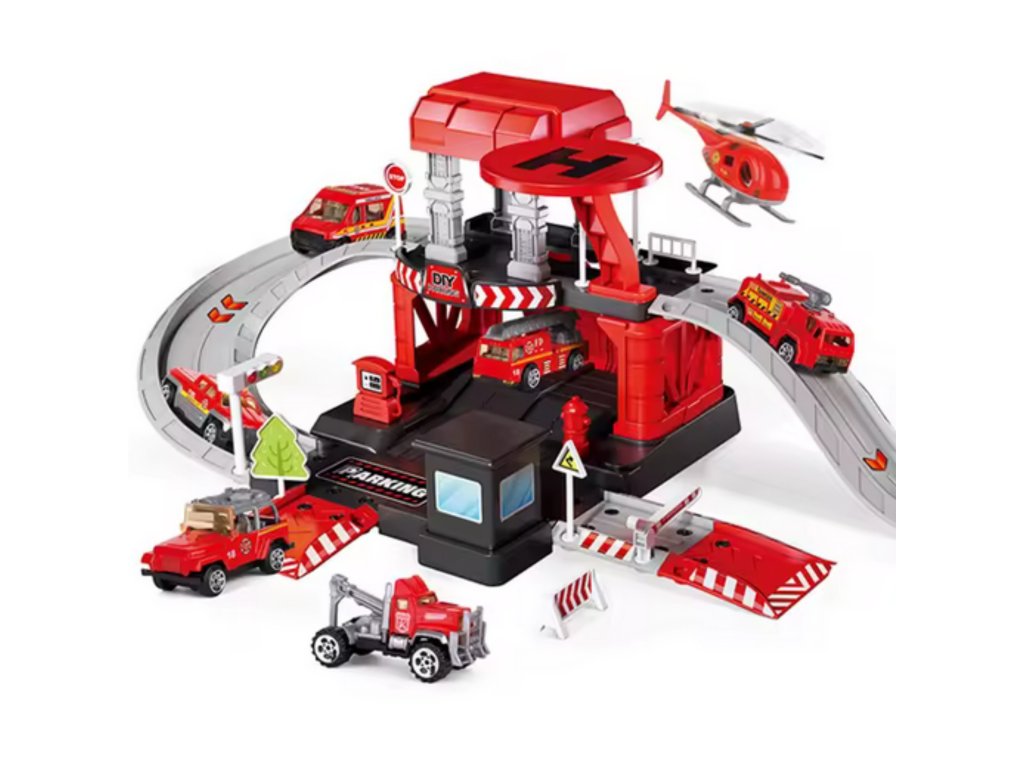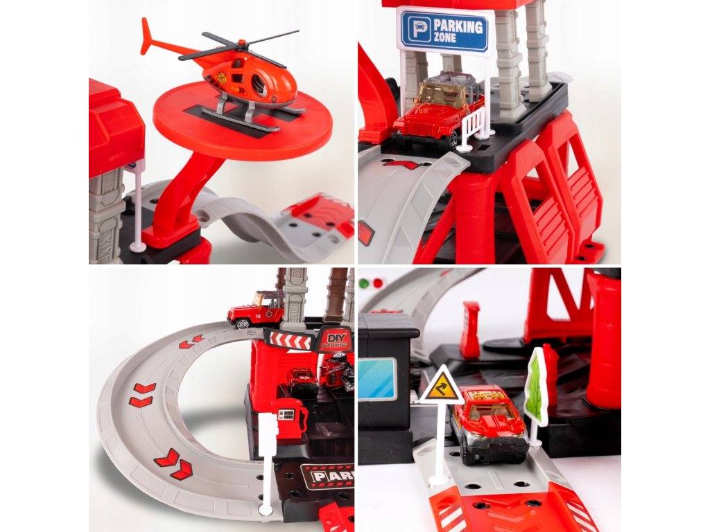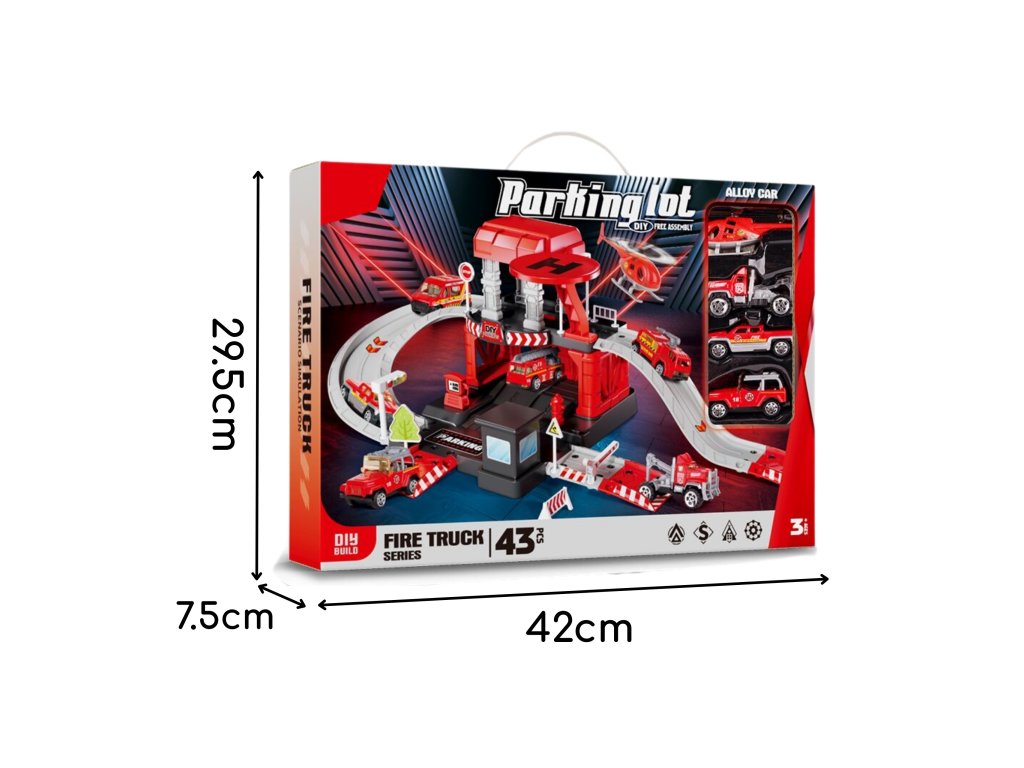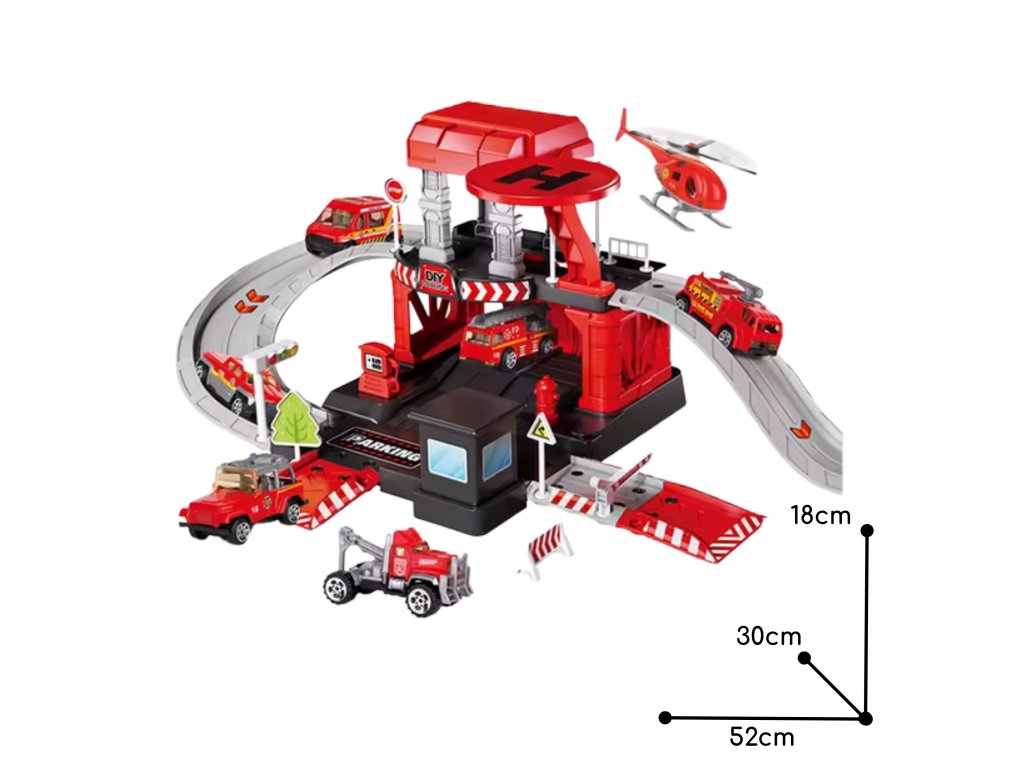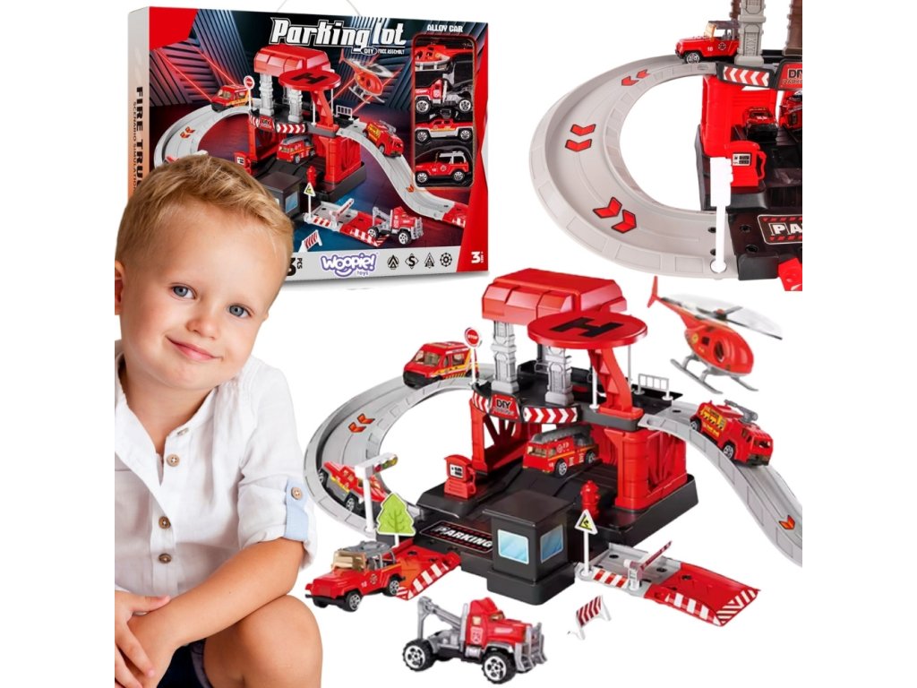 Parkovisko hasičskej stanice od značky Woopie s príslušenstvom a vozidlami súfantastická sadatematická hračka pre každého malého milovníka áut a uniformovaných služieb! Hračka potešíbohatosť detailovs veľkým počtom prvkov, pestrými farbami a množstvom herných možností. Dvojposchodové parkovisko s rampami, pristávacou plochou pre vrtuľníky a množstvom doplnkov umožňuje dieťaťuvytváranie vlastných scenárov hry, ktoré sú obmedzené len vašou predstavivosťou. Tri kovové autíčka a vrtuľník využijú každú z funkcií garáže a umožnia vám hrať sa so súrodencami alebo kamarátmi a prevziať úlohu malého hasiča.