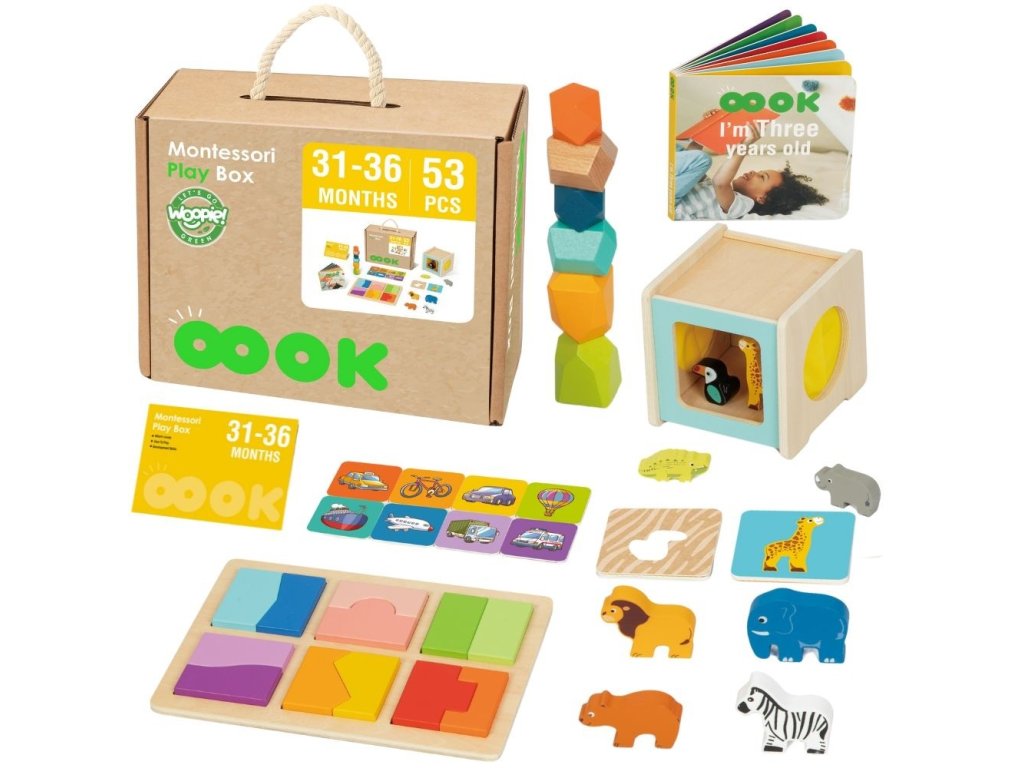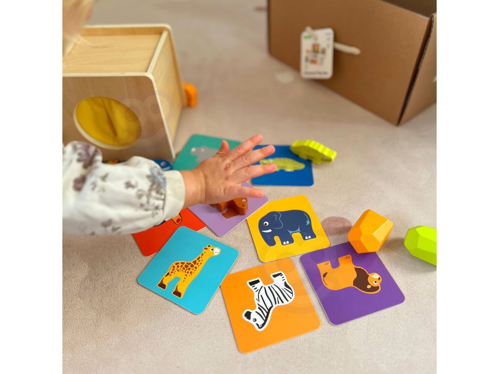 Hlavný popis Objavte svet vzrušujúceho učenia a tvorivej hry so súpravou Montessori Play Box, vytvorenou špeciálne pre zvedavé batoľatá, ktoré sa blížia k tretím narodeninám. Toto nie je obyčajný box na hračky - je to starostlivo premyslená zbierka vzdelávacích pomôcok, ktoré podporujú prirodzený vývoj vášho dieťaťa v kľúčovom období 31-36 mesiacov. Každá časť súpravy bola navrhnutá tak, aby inšpirovala k sebapoznávaniu, riešeniu problémov a skúmaniu okolitého sveta. Od skladania farebných kameňov po priraďovanie tvarov a zvieratiek - táto sada mení každodennú hru na vzrušujúce učebné dobrodružstvo a pripravuje vaše dieťatko na nové predškolské výzvy.
