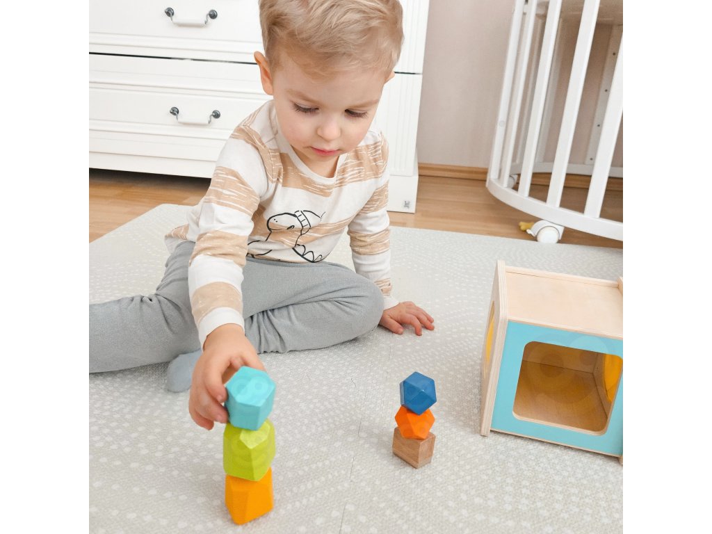 - - Drevené balančné kamene: Sada viacstenných blokov na stavanie veží, ktoré učia trpezlivosti a zmyslu pre rovnováhu.