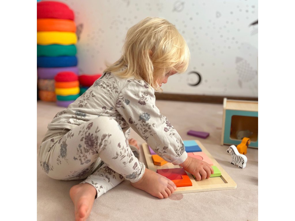 - - Logické myslenie - Priraďovanie kúskov puzzle a odvodzovanie tvaru predmetu len na základe hmatu je výborným tréningom mysle.