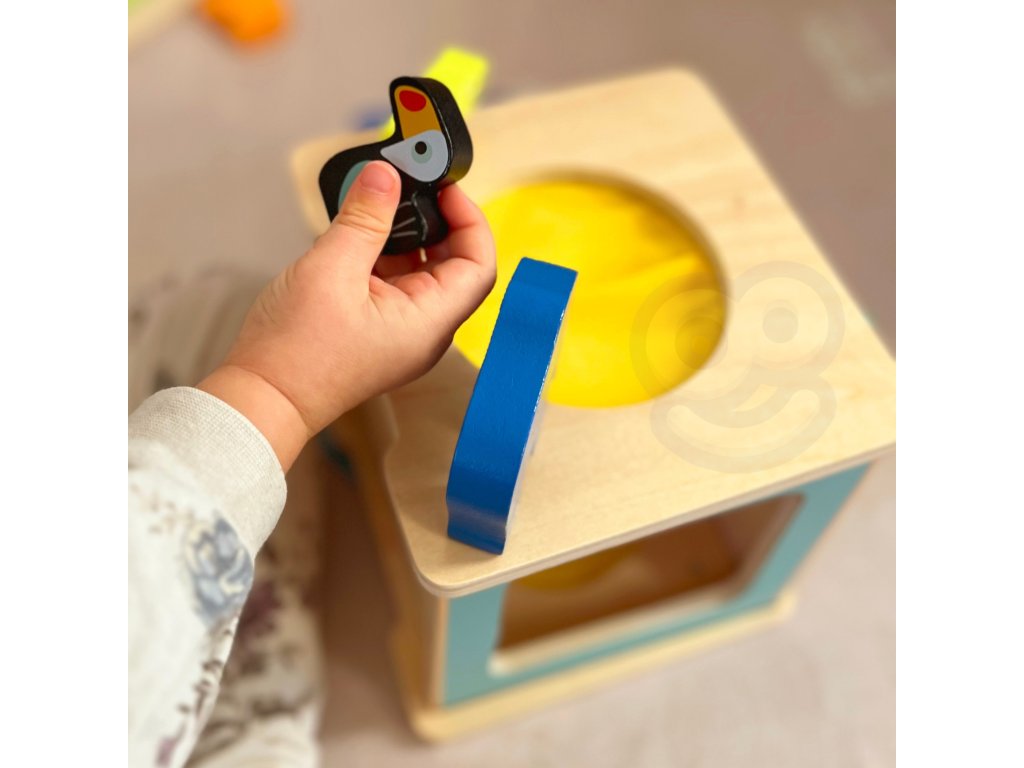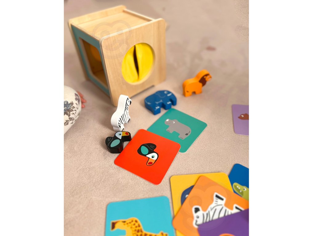 - - Malé motorické zručnosti - Manipulácia s predmetmi v krabici a presné usporiadanie hádaniek precvičuje šikovnosť prstov.