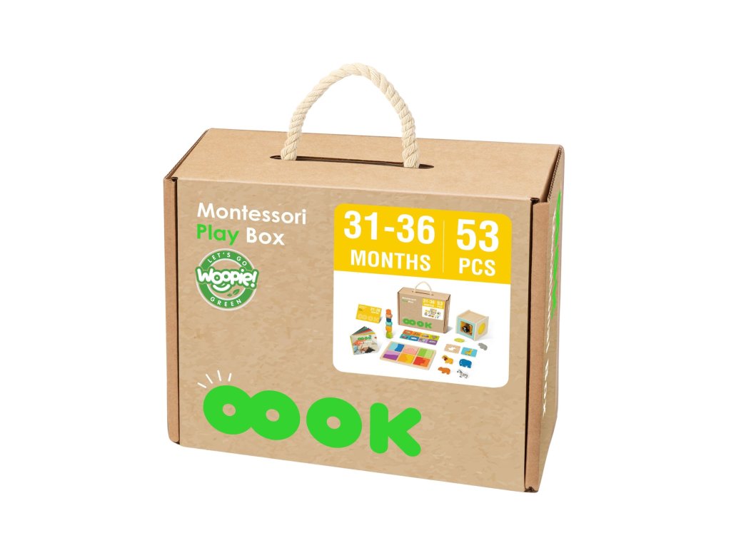 WOOPIE GREEN Box XXL Montessori vzdelávací senzorický box 7v1 31-36 mesiacov. FSC