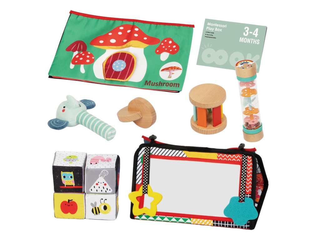 Preskúmajte stránkuBox Box XXL Montessori vzdelávacie 6v1 od značkyWOOPIE GREEN - ideálna senzorická súprava pre batoľa vo veku3-4 mesiace. Krabica obsahuje 6 starostlivo vybraných hračiek, ktoré podporujú psychomotorický vývoj dieťaťa a zároveň stimulujú zmysly: zrak, hmat a sluch. Každá hračka je inšpirovaná metódou montessori, vďaka ktorej ide učenie a zábava ruka v ruke. Je to skvelý darček, ktorý prináša radosť, rozvoj a hodnotne strávené chvíle.
