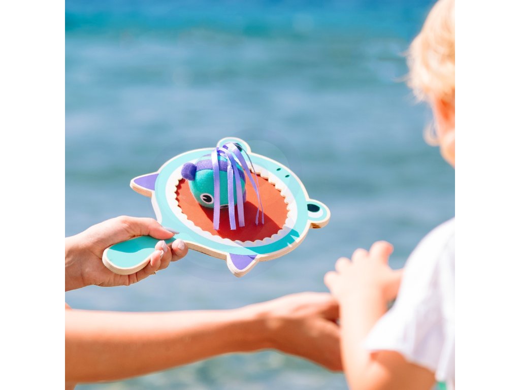 Hra CATCH BALLod značky WOOPIE zo série ZELENÁje zábava pre každýi všade!Súprava obsahuje paletu so suchým zipsom v tvare žraloka + 2 mäkké farebné rybičky. Hra spočíva v chytaní loptičiek/rybičiek na palete so suchým zipsom. Môže sa hrať samostatne alebo s priateľmi, napr. jeden alebo 2 ľudia hádžu a jeden chytá.Hrať môžete kdekoľvek - v interiéri a exteriéri. Živé farby upútajú pozornosť každého dieťaťa a zaujmú hoaktívna hra. Okrem toho je plusom žiadne ostré hrany vďaka čomu je výrobokbezpečné pre naše deti. Prostredníctvom tejto hryrozvíja sa tímová práca isúťaž, a zároveň rozvíjaťmotorické zručnosti dieťa.