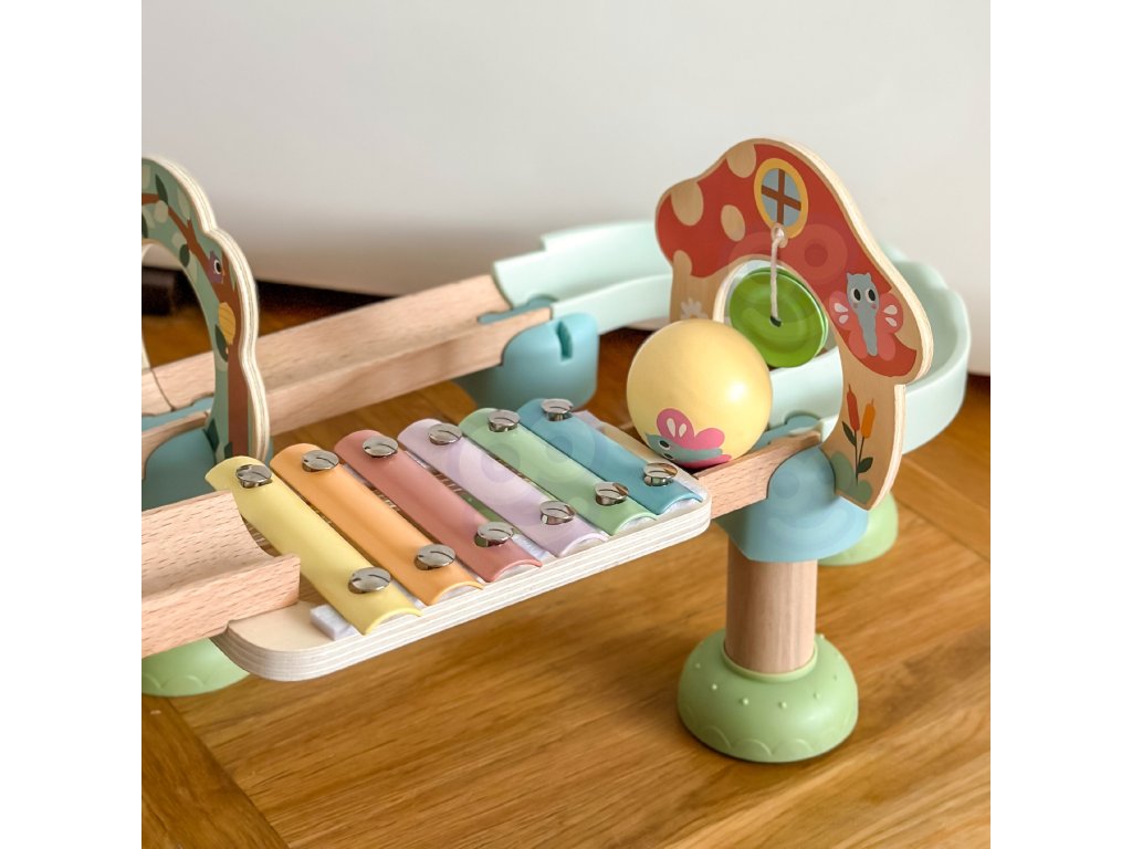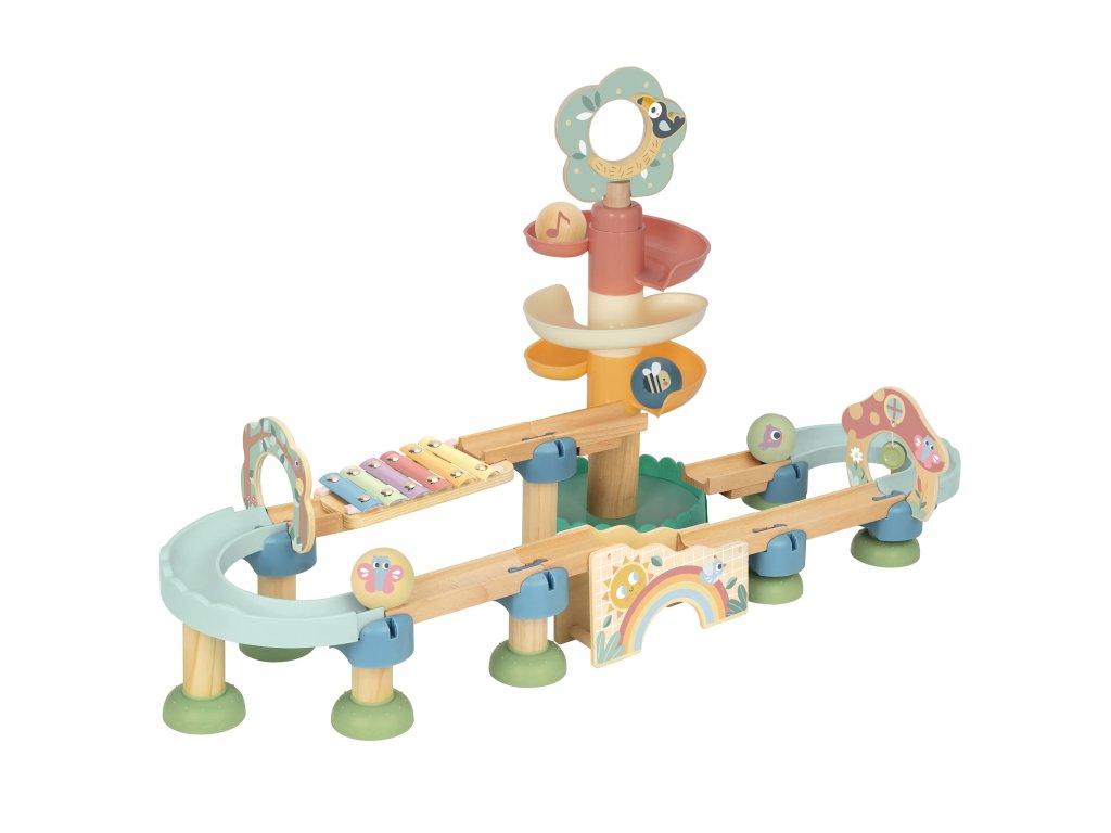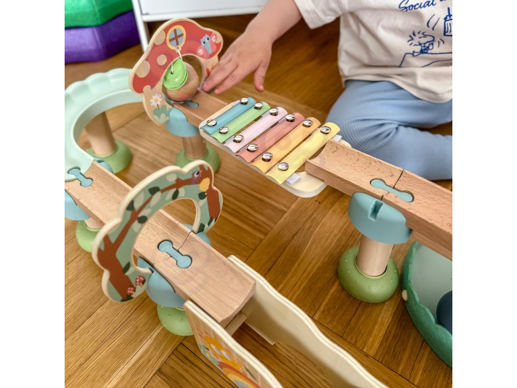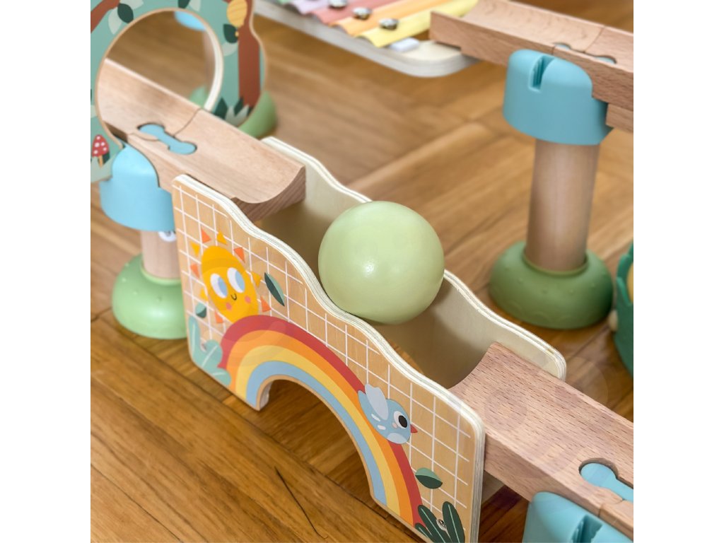 WOOPIE GREEN Drevená guľôčková dráha so zvukovými efektmi Činely FSC